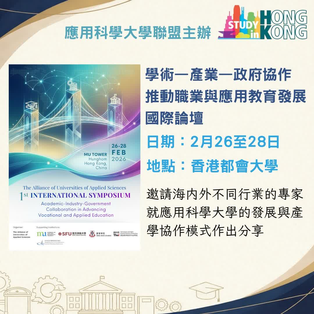 除APAIE外,蔡若蓮表示,應用科學大學聯盟亦將於2月26日至28日舉行國際論壇,邀請海內外多元產業專家分享應科大發展及產學協作模式。論壇將設兩場主題演講,從策略層面探討聯盟治理與合作效能;另設四場專題討論,聚焦全球及本地案例,深入剖析產學研協作模式、人才培育與創新生態系統的實踐經驗。