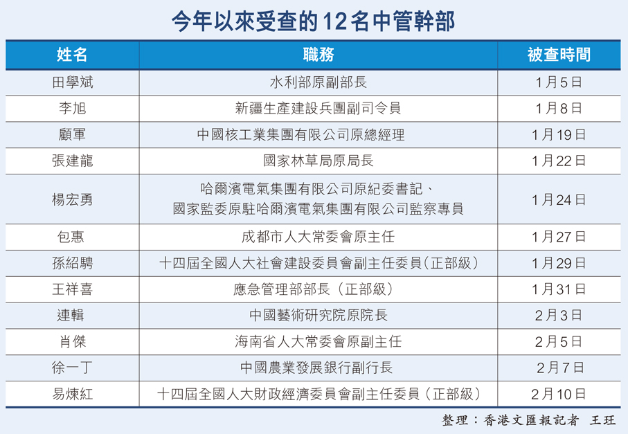 中央節前打「虎」不停歇。中央紀委國家監委10日一早通報,十四屆全國人大財政經濟委員會副主任委員易煉紅涉嫌嚴重違紀違法,正接受中央紀委國家監委紀律審查和監察調查。67歲的易煉紅曾主政瀋陽、長沙兩個省會城市,後又擔任過江西省省長、江西省委書記、浙江省委書記等要職。政情觀察人士指出,開年不到兩個月,公開通報接受審查調查的中管幹部已達12人,其中包括在任國家部委部長等正部級官員,種種跡象顯示,今年反腐力度比去年有增無減,中央將對腐敗行為始終保持強大震懾,利劍高懸。