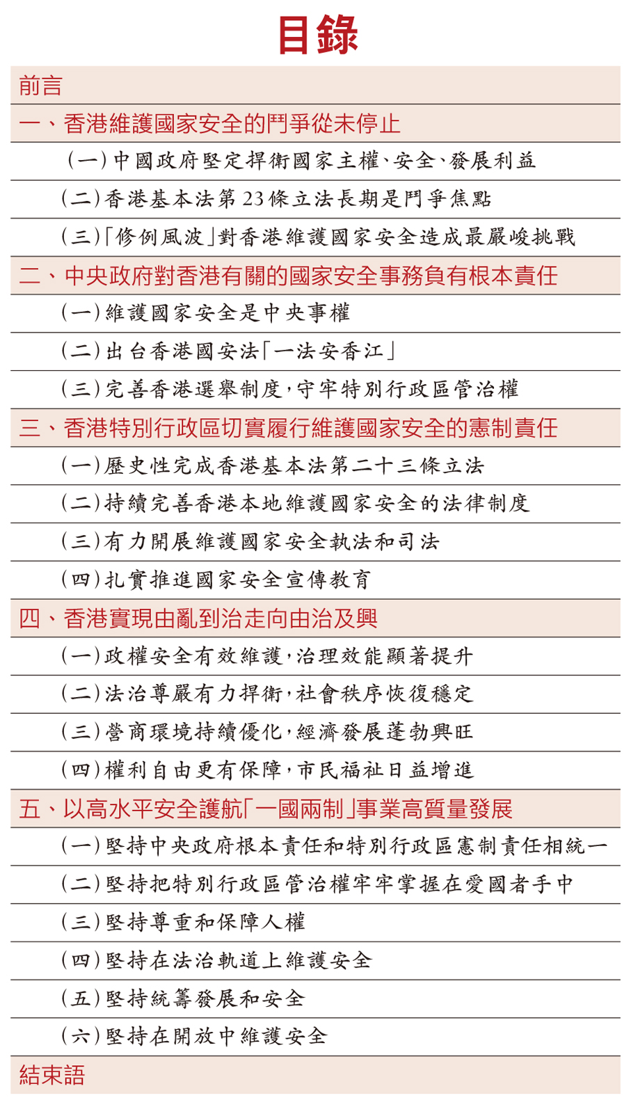 為全面總結香港維護國家安全的實踐歷程和經驗啟示,正本清源、凝聚共識,以高水平安全護航「一國兩制」事業高質量發展,中國政府特發布本白皮書。