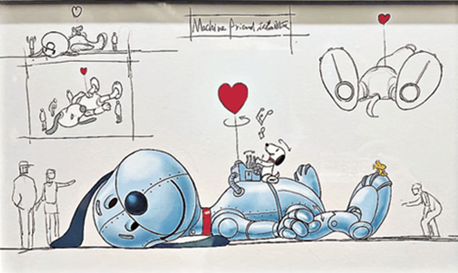 入場前,L1層的巨型機械史努比裝置可謂北上港客朝聖史努比之旅最重要一站,頂級裝置藝術家肖迪將標誌性「美學」注入史努比,打造出如「鐵甲奇俠」般的Cyber史努比,它不僅身形巨大,更擁有精細機械關節,大家能看到這隻史努比眨眼、轉動耳朵,甚至與遊客互動,萌趣加型格兼備,絕對不能錯過。四大展區中,展區一「花生漫畫的藝術」 邀請到東京史努比博物館創意總監策展,展出50多幅經典漫畫作品,一起感受東方藝術視角裏的史努比。