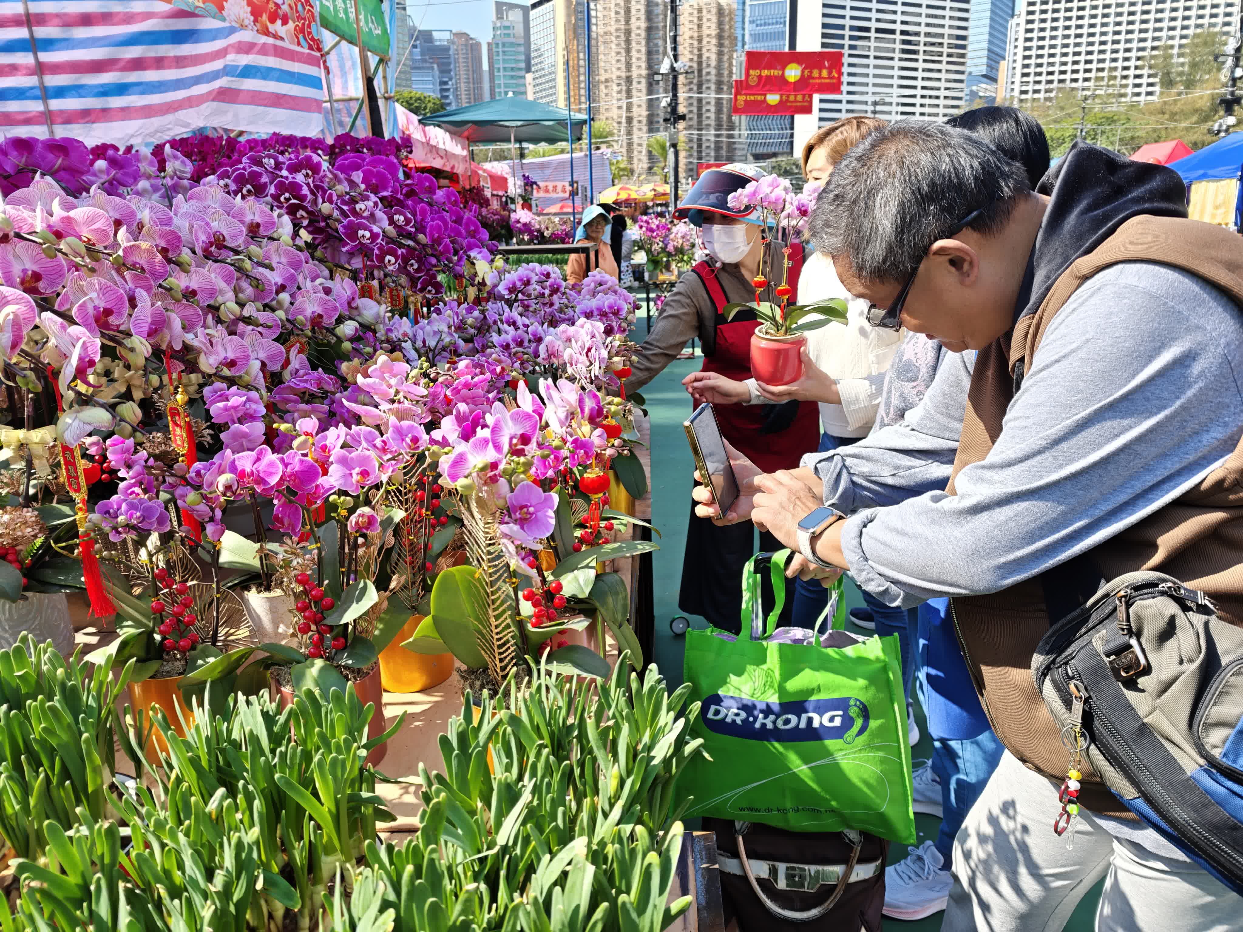 市民黎先生一行人手捧桃花、水仙及蝴蝶蘭等戰利品,今日滿載而歸。他表示,是次預算控制在一千元內,「價格合理,同往年差不多,有一百蚊三棵,好點一百蚊一棵,桃花三四百蚊都有。」新年將至,他說自己將留港過年,是次購花會「擺啲返屋企,望到開心啲,過年有氣氛」。