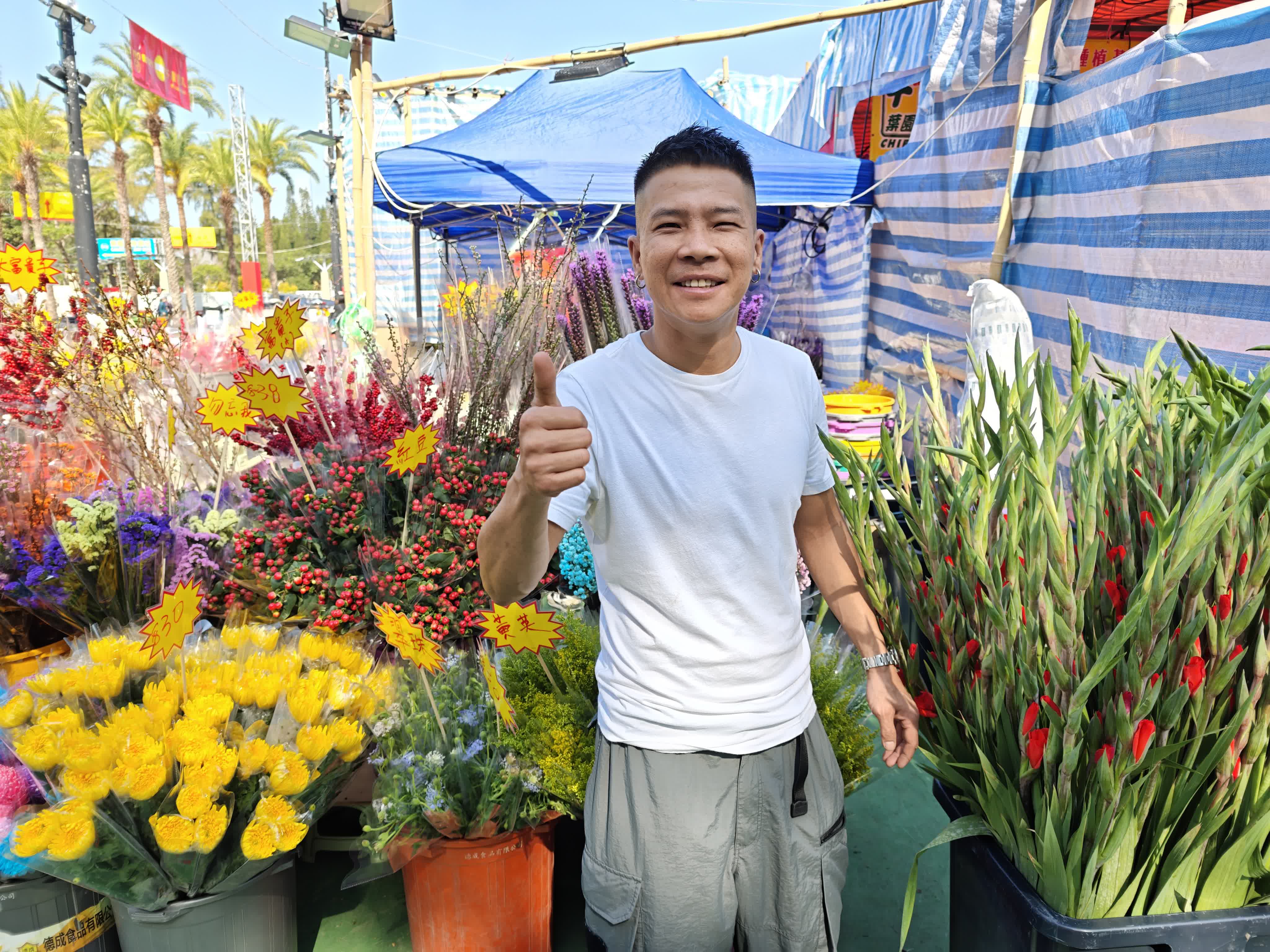 一花檔負責人鄭先生向記者介紹:「我哋有翠珠、黃英、紅豆、富貴子……」舖內不同品種花朵爭奇鬥艷。他透露,自己已在維園市場同一位置連續經營3年,今年特別增加了約三成新品種,希望由此吸引更多市民光顧。他對今年市道十分有信心,估計今日銷量可超千隻,並期望今年總銷售額「多一倍」。