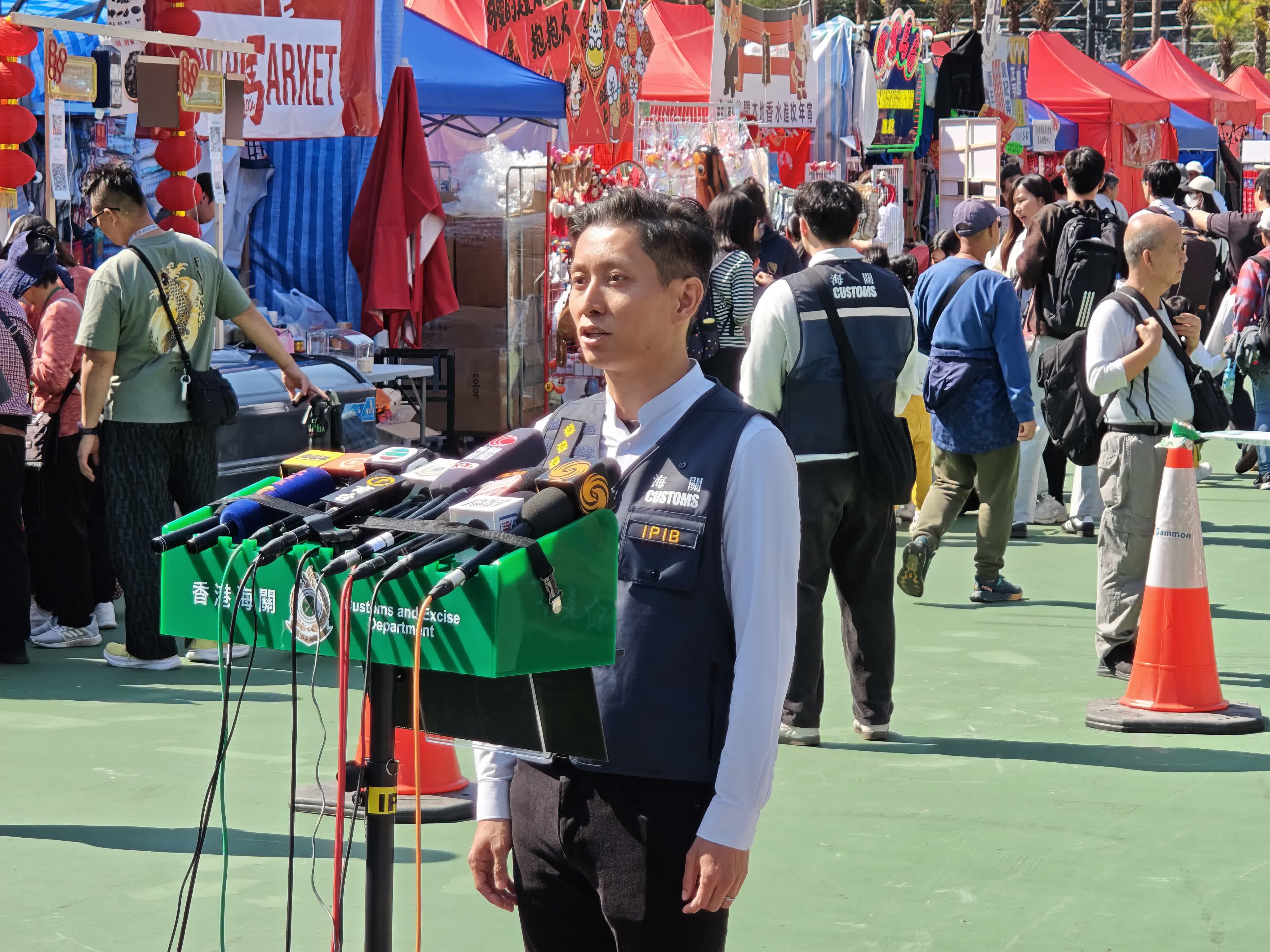 香港海關強調,將持續打擊侵犯知識產權活動。部門高級調查主任(版權及商標一般調查組第二隊)吳家俊表示,在市場運行的7天裏,執法人員會積極走訪各攤位,提醒商戶切勿售賣侵權物品。他強調,一旦發現侵權活動,海關將果斷執法,絕不手軟,呼籲商戶共同維護市場秩序,切勿以身試法。