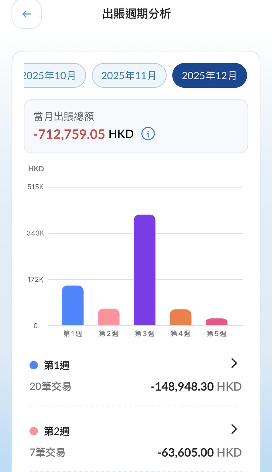 4. 出賬週期分析:分析跨銀行的支出交易,反映出賬週期模式;