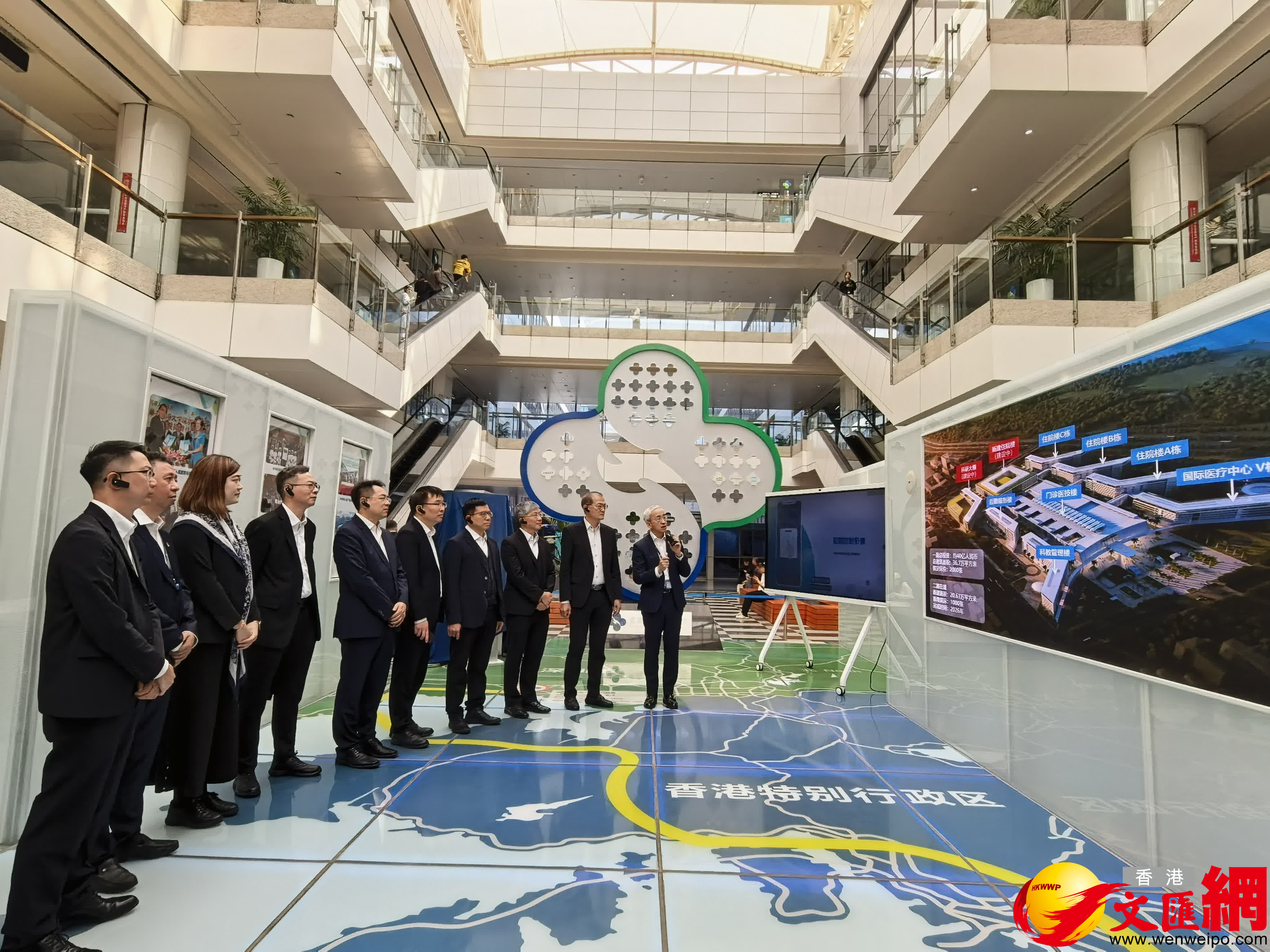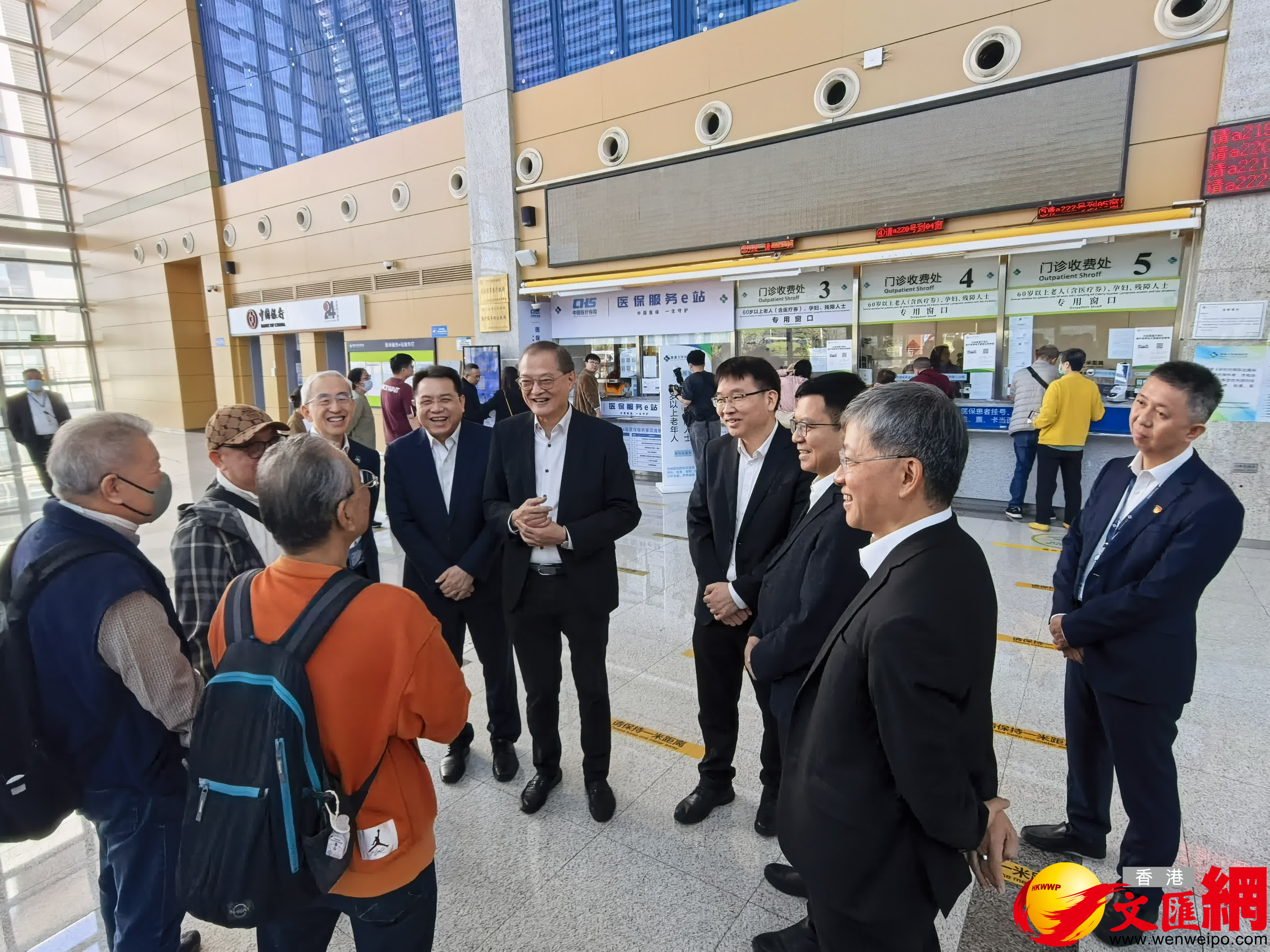 隨後,盧寵茂與廣東省衞生健康委員會副主任鄧林峰一同前往香港大學深圳醫院,實地調研跨境醫療服務措施的落地使用情況,並參觀醫院二期建設項目。
