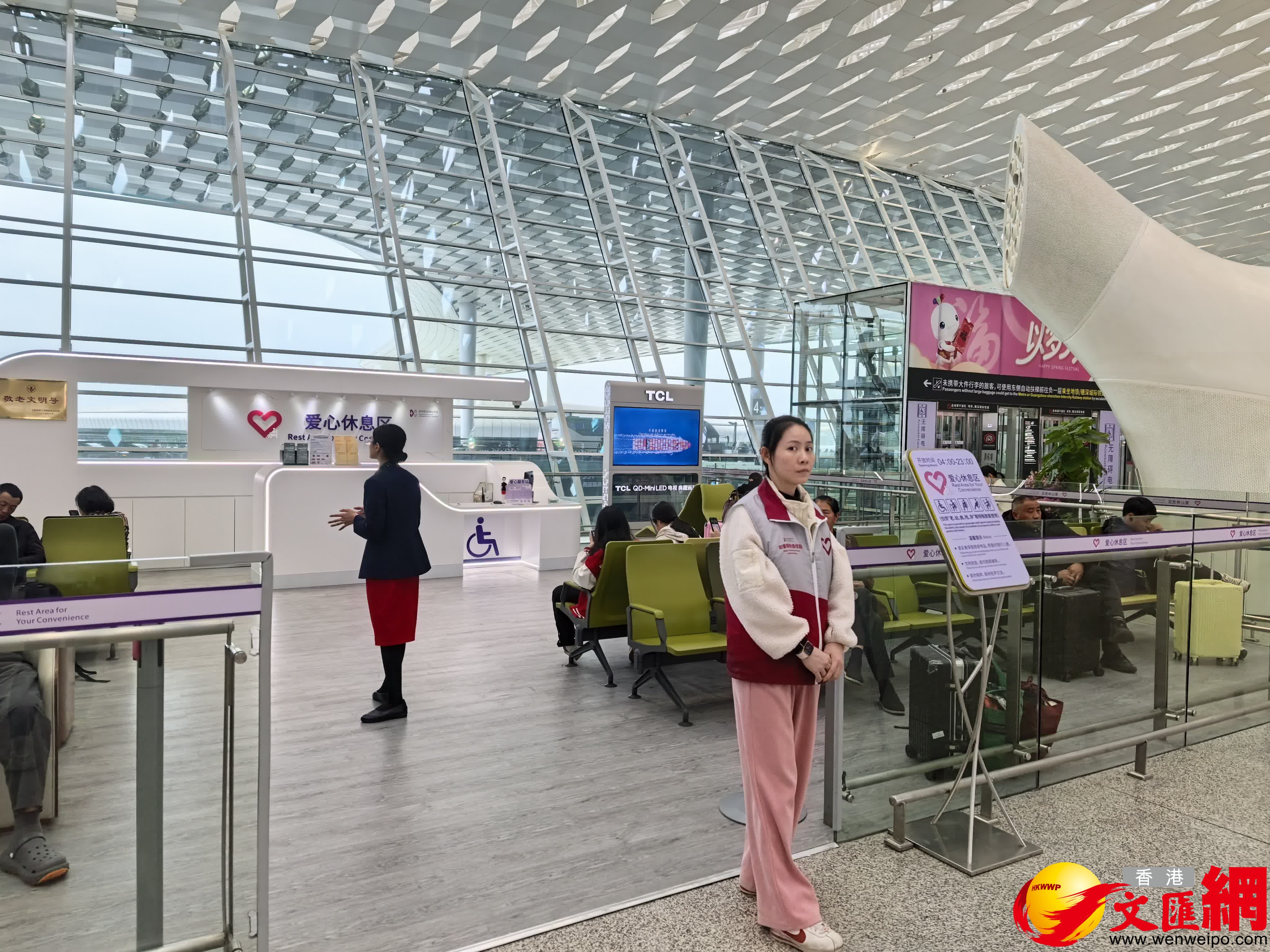 (香港文匯網記者 郭若溪)聚焦老年旅客、行動不便旅客等特殊群體的出行需求,深圳機場近日完成T3航站樓愛心休息區的全面煥新升級。2月10日,記者在位於四層出發大廳3號門旁的休息區看到,升級後的愛心休息區在空間與設施上實現雙重優化。