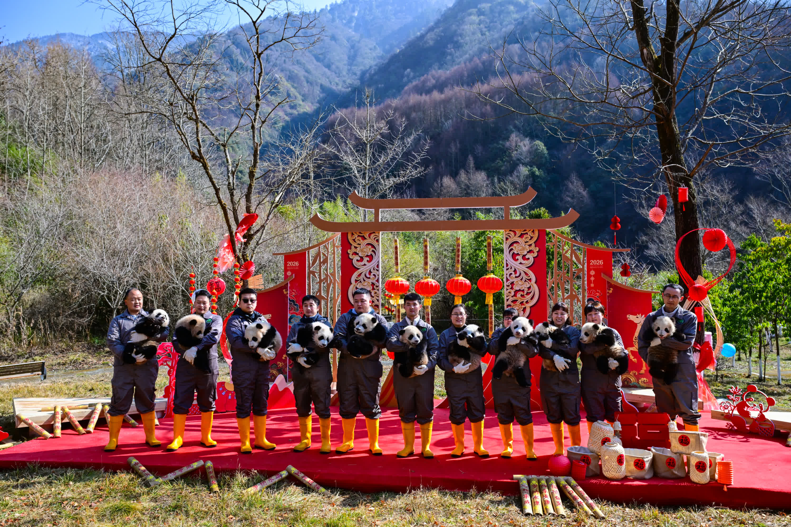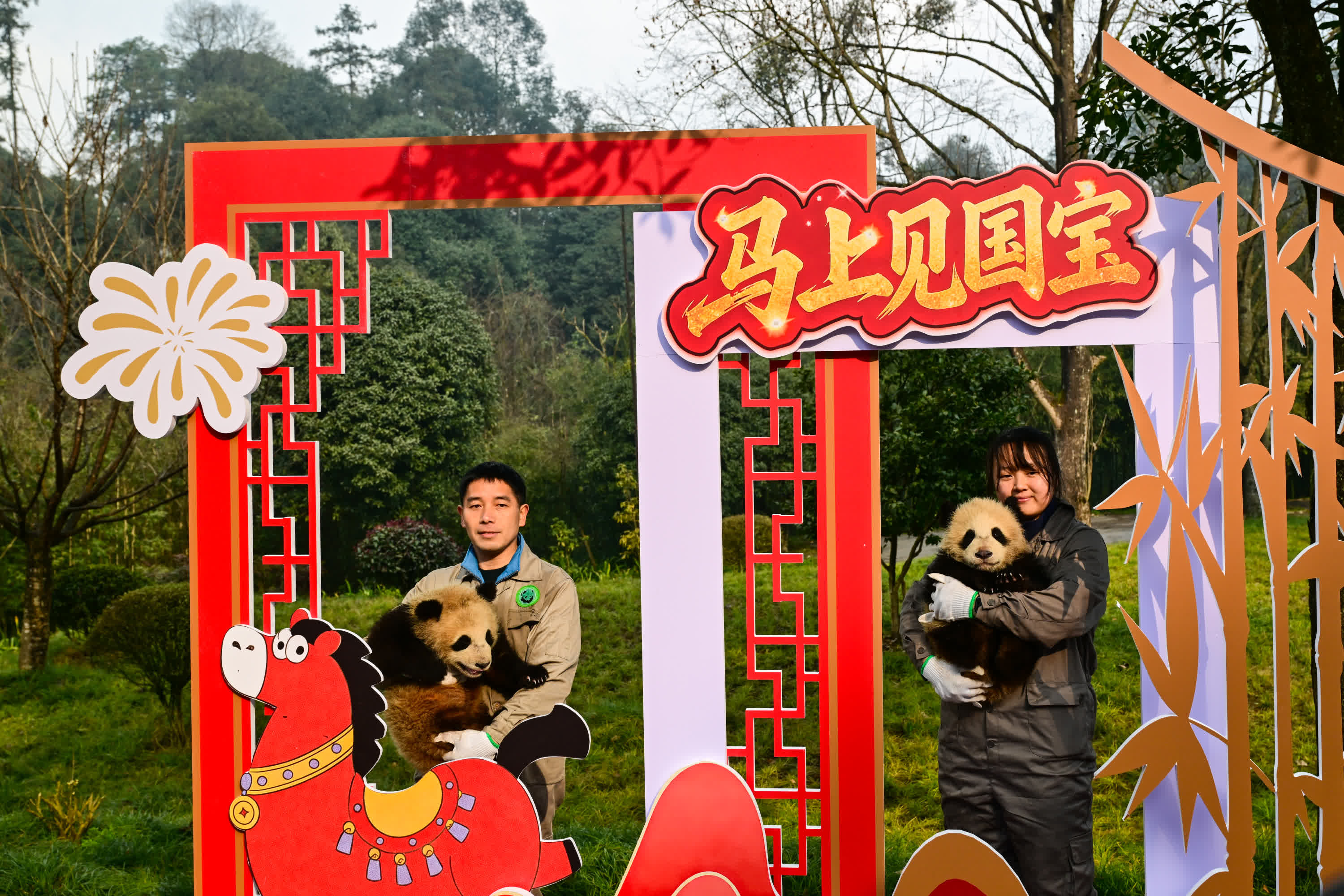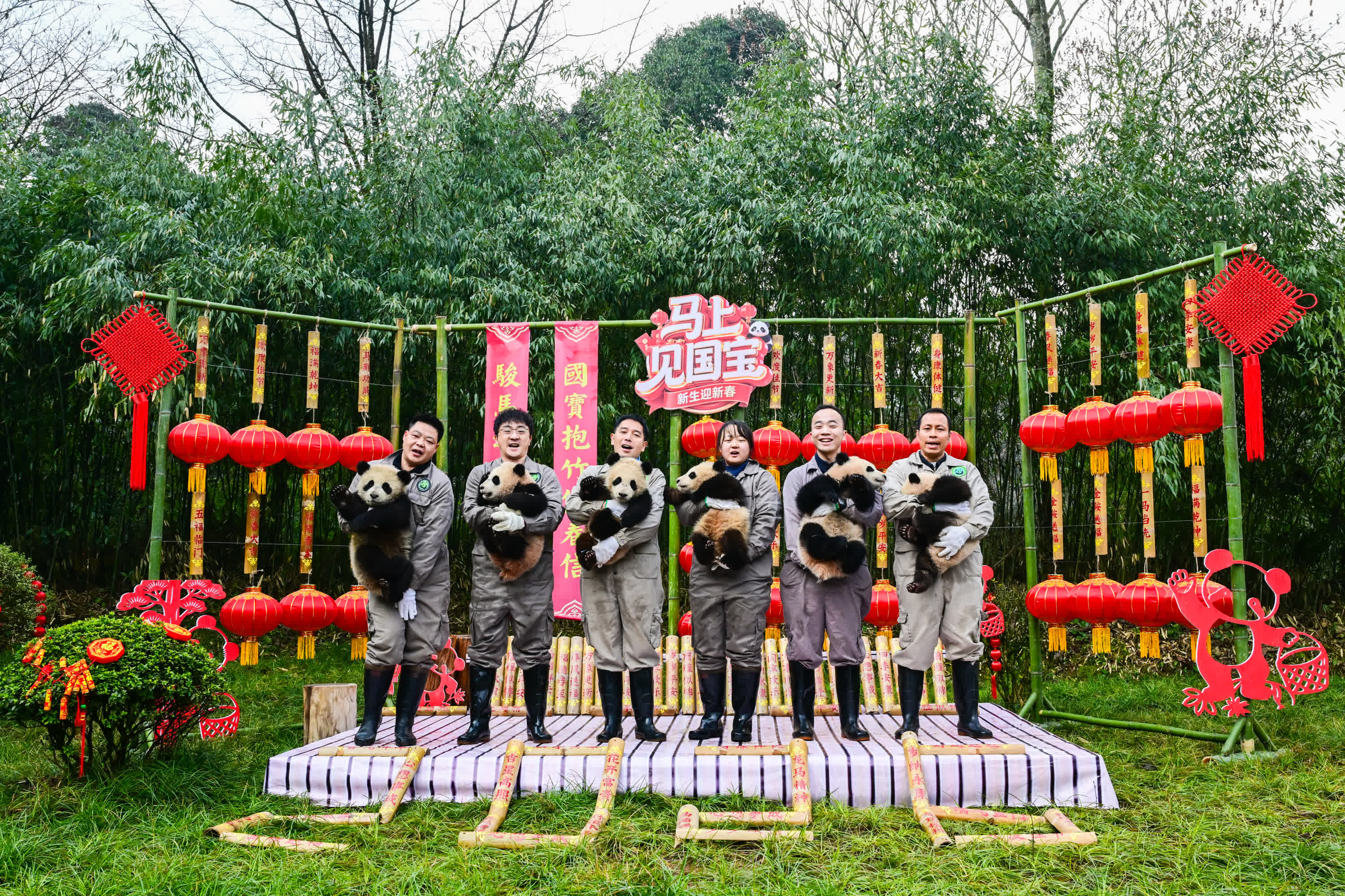 (香港文匯網記者 向芸)丙午馬年將至,2月11日,由大熊貓國家保護研究中心舉辦的「馬上見國寶」新春主題活動在多個點位展開。來自中國大熊貓保護研究中心(以下簡稱「熊貓中心」)和成都大熊貓繁育研究基地(以下簡稱「熊貓基地」)的30只2025級新生熊貓寶寶齊亮相,向全國人民送上「憨態可掬」的新春祝福。