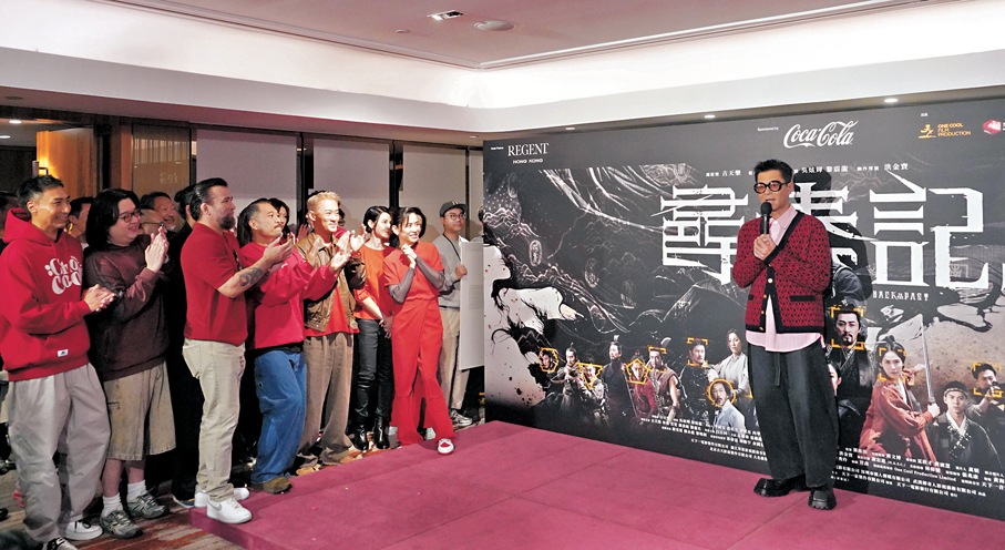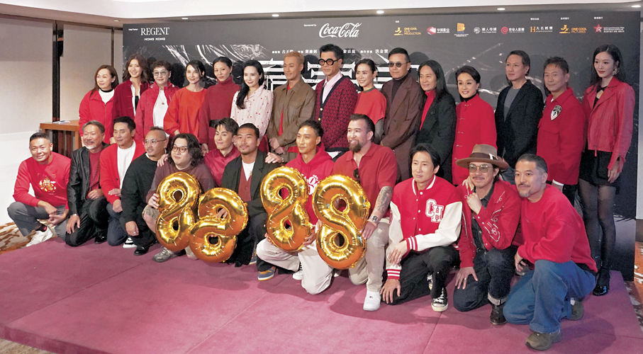 香港文匯報訊(記者 梁靜儀)古天樂(古仔)、林峯、宣萱、滕麗名及郭羨妮主演的電影《尋秦記》,前晚於尖沙咀舉行慶功宴。「第44屆香港電影金像獎頒獎典禮」入圍名單同天揭曉,古仔「連中兩元」,分別憑主演的《尋秦記》及《私家偵探》入圍「最佳男主角」,他坦言有兩部作品入圍是雙倍開心,並指喜見滕麗名憑《尋秦記》入圍「最佳女配角」,再加上《尋秦記》票房報捷,正式公布在情人節推出電影加長版,喜事連連,難怪古仔心情超好。