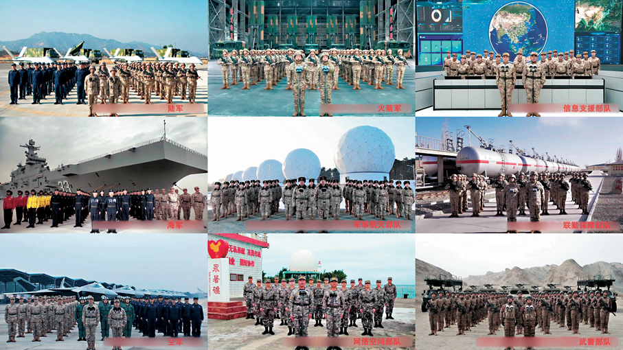 下午4時許,習近平來到八一大樓,同來自各軍兵種和武警部隊的9個單位視頻通話。陸軍某旅2營、海軍安徽艦、空軍航空兵某旅、火箭軍某旅、軍事航天部隊某部、網絡空間部隊某部、信息支援部隊某中心、聯勤保障部隊某倉庫、武警部隊某支隊,依次向習主席報告戰備值班和執行任務情況。習近平認真聽取匯報,同他們親切交流。看到官兵精神飽滿、士氣高昂,在各自崗位上扎實練兵備戰,習近平給予充分肯定,勉勵大家狠抓實戰化練兵,用好手中武器裝備,提高部隊戰鬥力建設和運用水平。