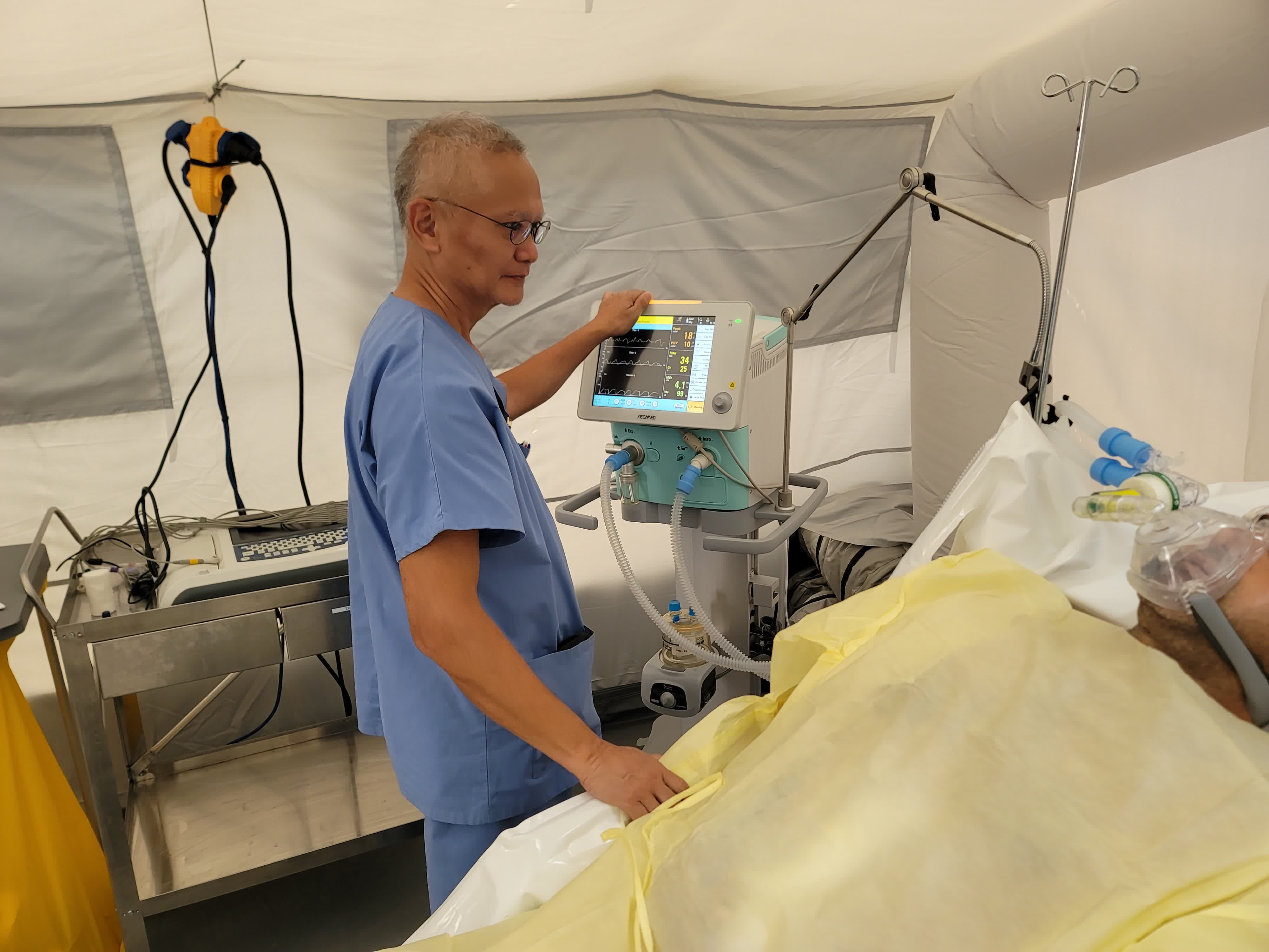 在急症室,他處理過一位在大型災難事件中頭部受傷的女士。那位女士左邊頭骨已經被炸沒,生命垂危,戰地醫院卻沒有腦外科和神經外科醫生可以為她做手術。唯一能做的,只有為她提供大量嗎啡,然後將她放在其他帳篷裏由產科護士照看。