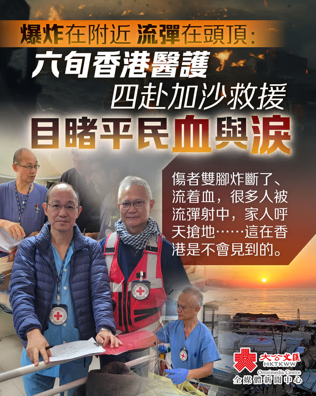 巴以衝突爆發逾兩年,加沙的土地上,流離失所成了常態,炮火連天、物資短缺、疾病蔓延,正不斷吞噬平民的生存希望。2024年5月以來,香港紅十字會先後九次調派醫護義工到加沙南部拉法市的戰地醫院,參與紅十字會的緊急醫療工作。