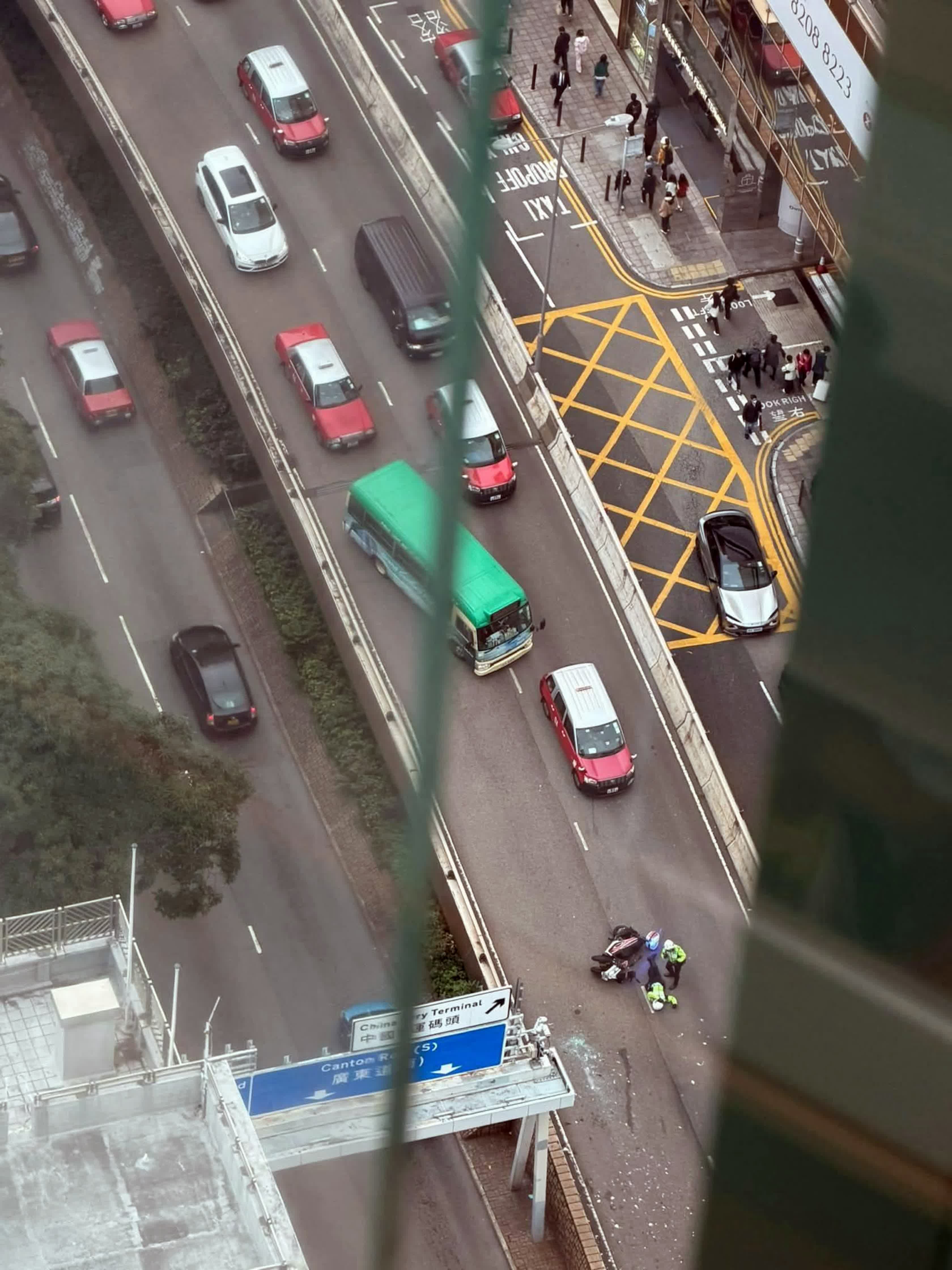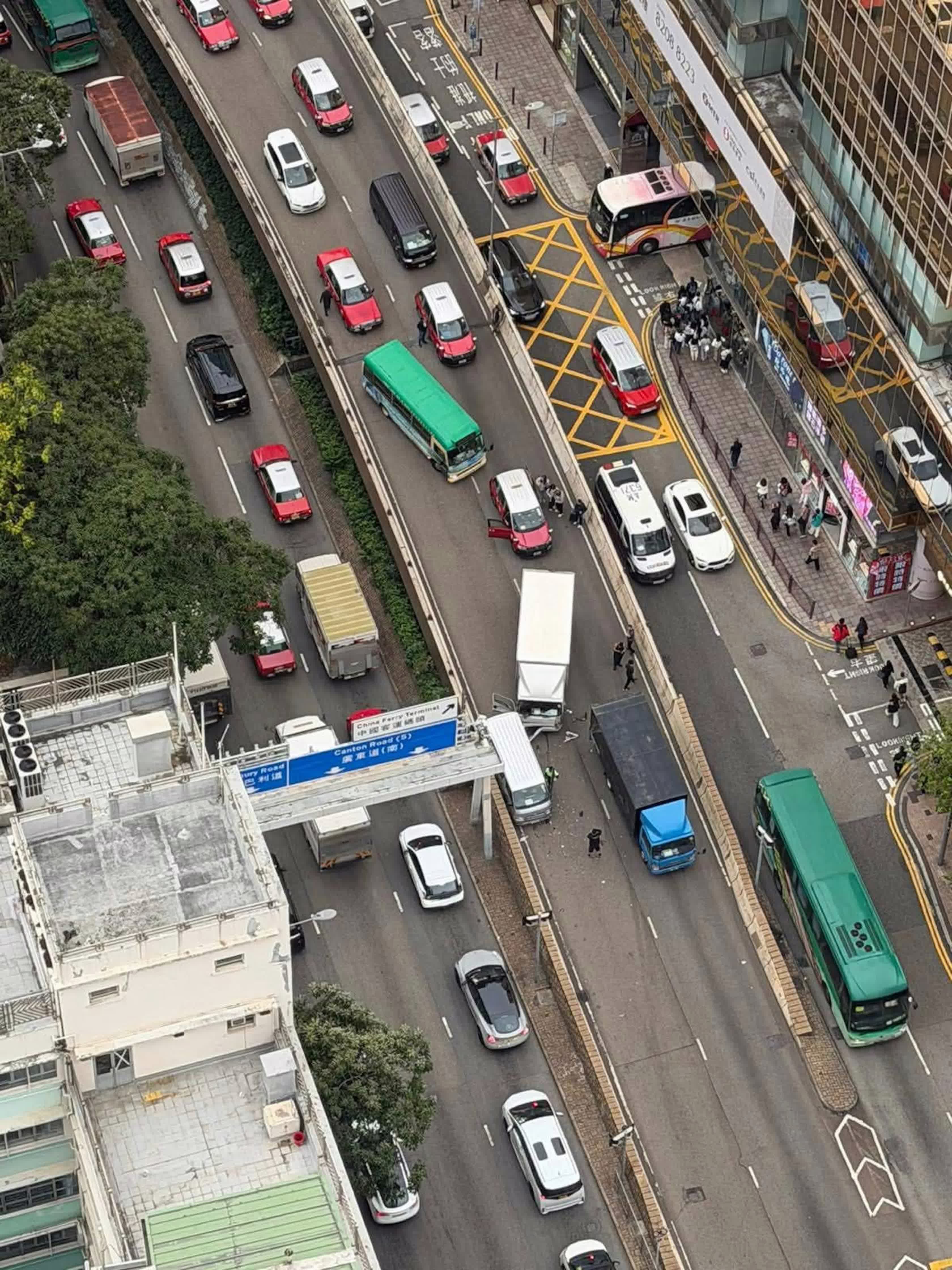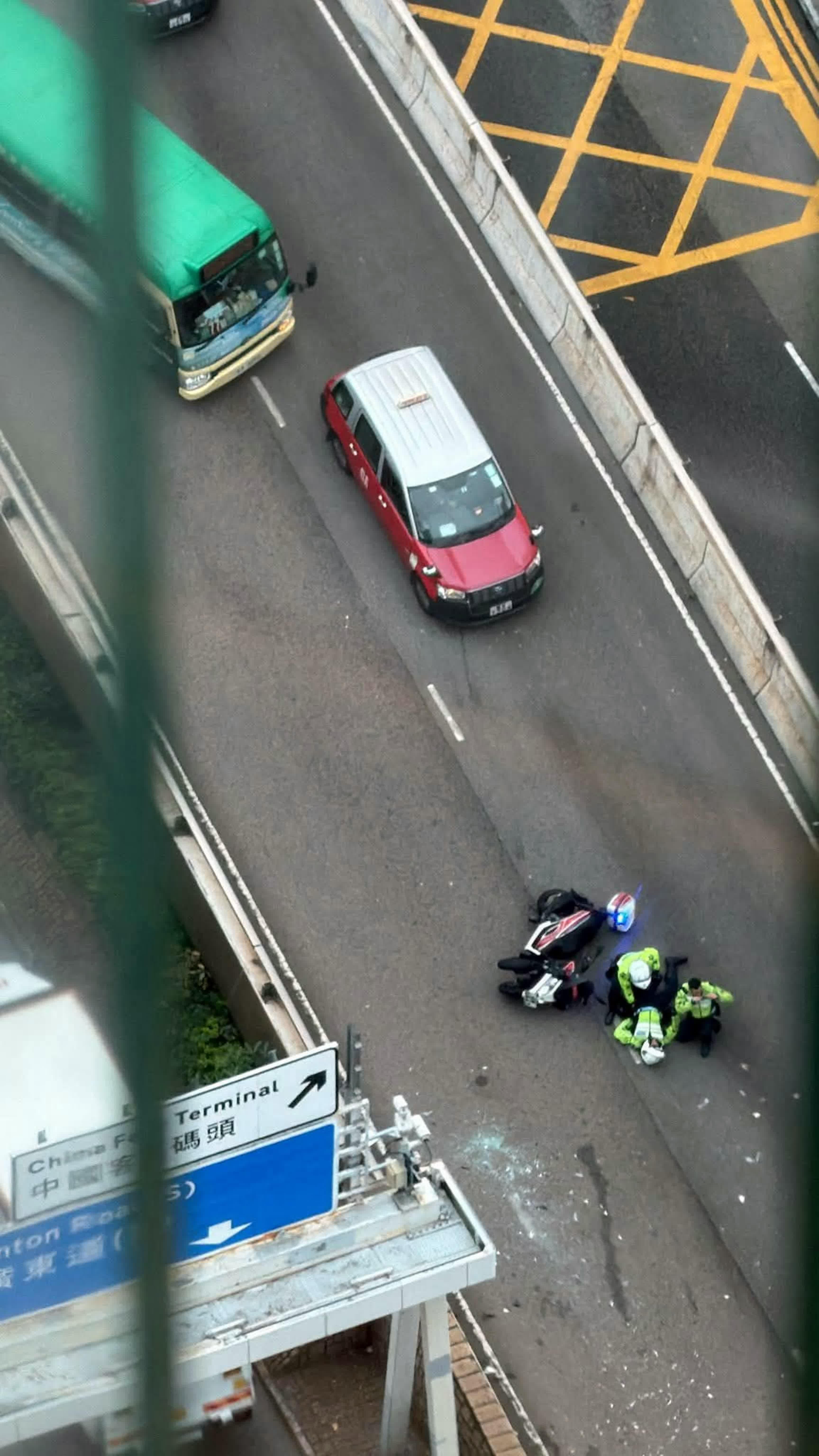 由網上圖片可見,肇事三輪警車向左翻側路中,失事男警長大字型倒在車旁,有同袍上前查看其傷勢,至於早前失事的兩輛輕型貨車及一輛客貨車已駛離橋面,地面留有玻璃碎片。