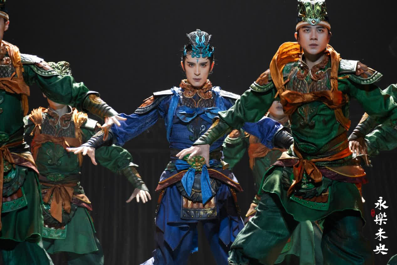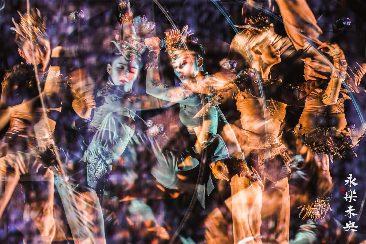 永樂宮,這座位於山西運城芮城縣的元代建築群,宮內現存元代壁畫達1005.68平方米,因極高的藝術水準,被譽為「東方藝術畫廊」。舞劇《永樂未央》以永樂宮遷建史詩為敘事主線,創造性地提煉出「古建、壁畫、琉璃、傳承」四重美學維度,分為四個篇章:「築廣廈」「繪至境」「煉釉心」「承光陰」。