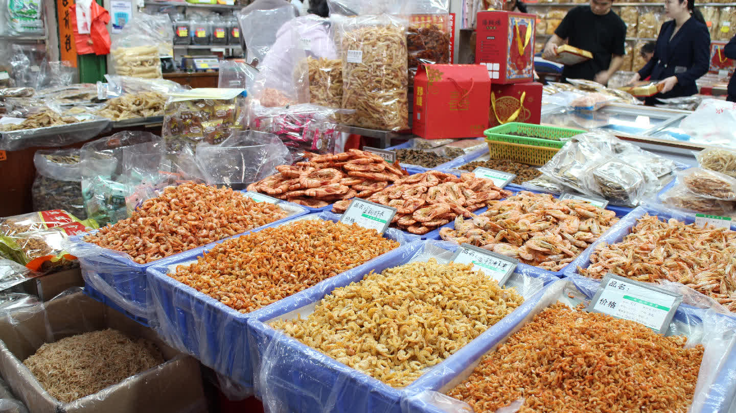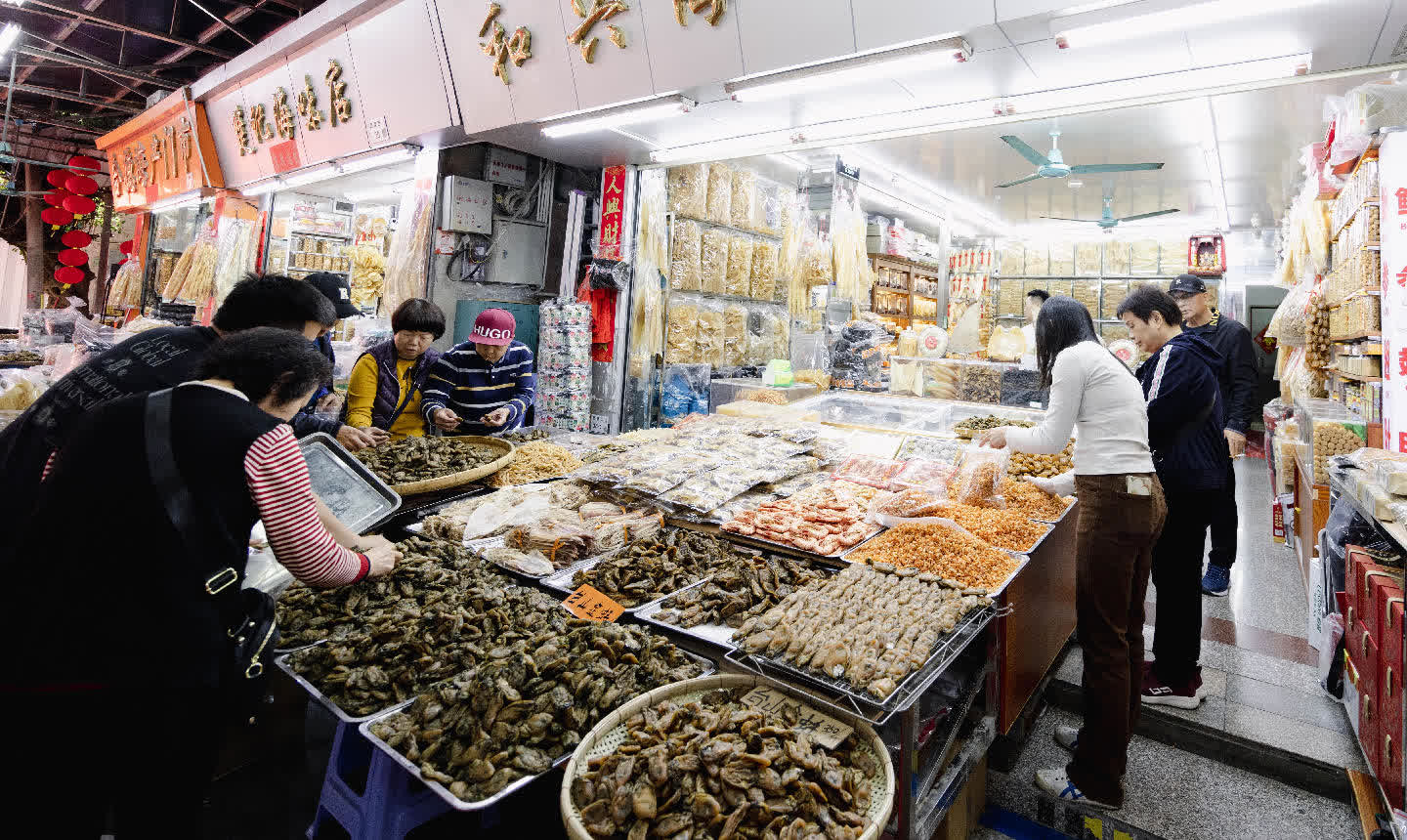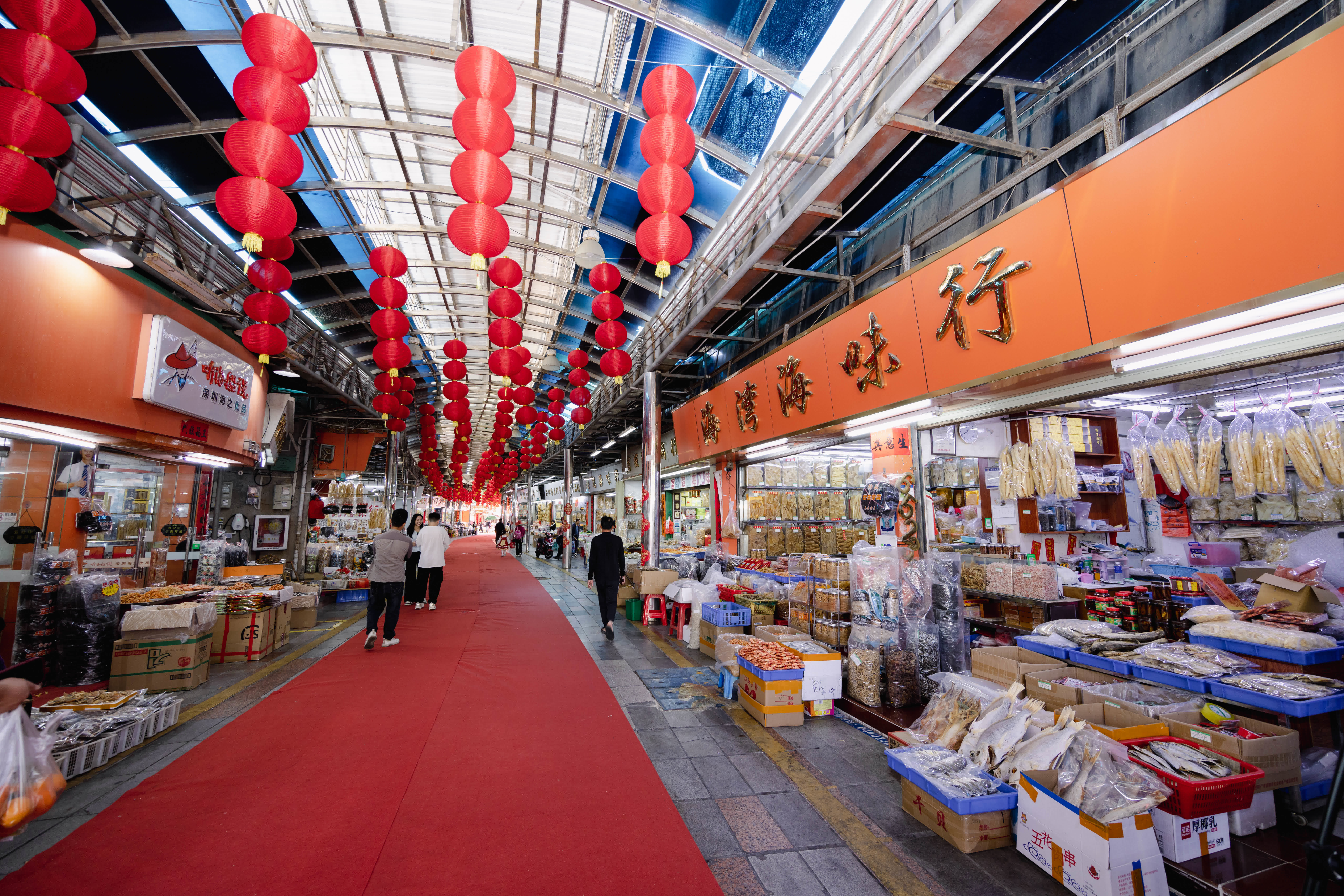作為粵港澳大灣區知名海味採購點,這條約500米長的街區匯集乾鮑魚、乾貝、本地頭水紫菜、蚝豉、九節蝦乾、金蝦米、馬鮫魚乾、花膠等全品類海產乾貨。蚝豉寓意「好事連連」,花膠、鮑魚適合團圓家宴,乾貝、蝦米為家常菜肴提鮮,既符合廣東及香港市民飲食口味,也是走親訪友的體面手信,一站式滿足市民備年貨、宴賓客、贈親友的多元需求。