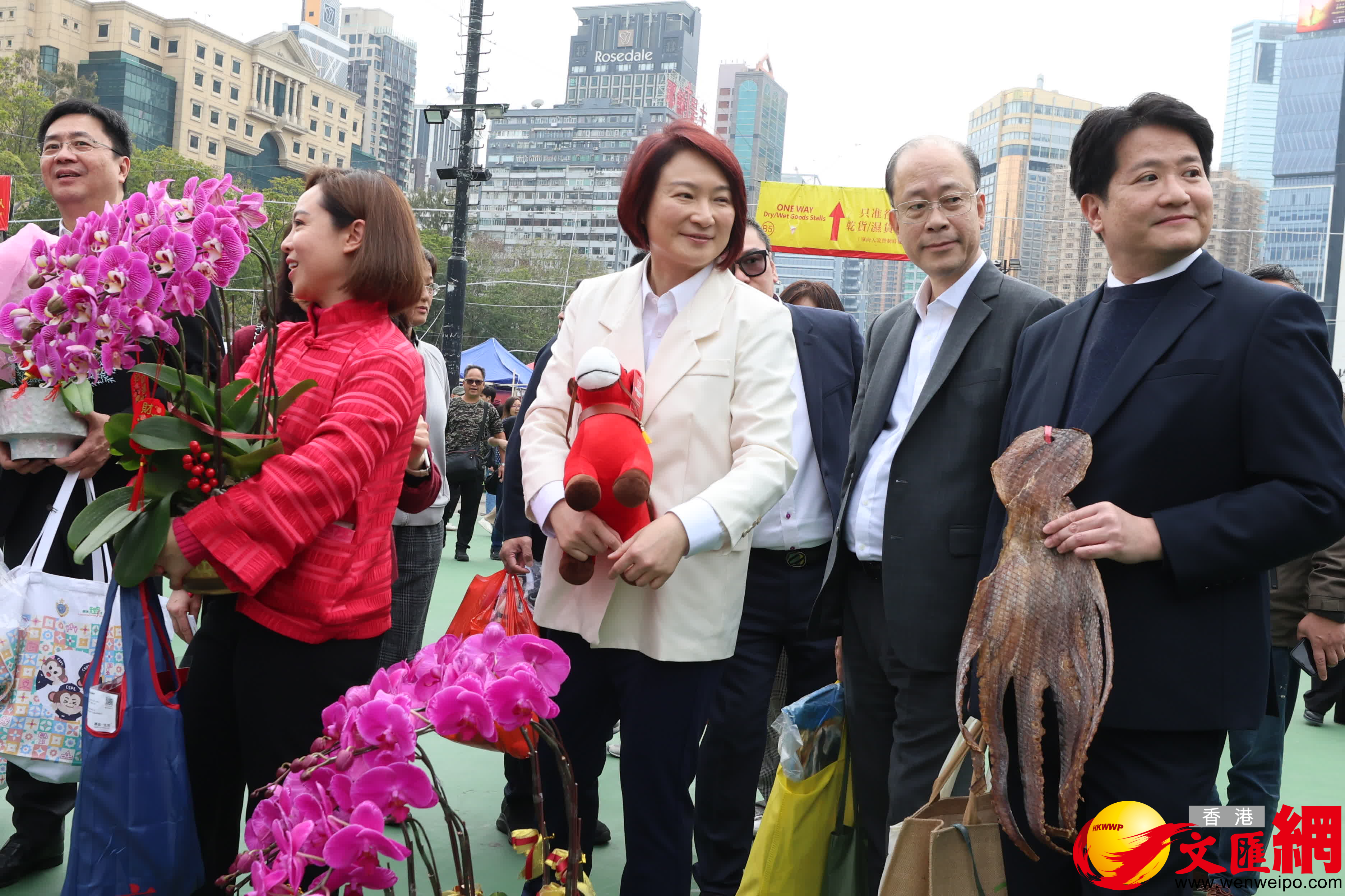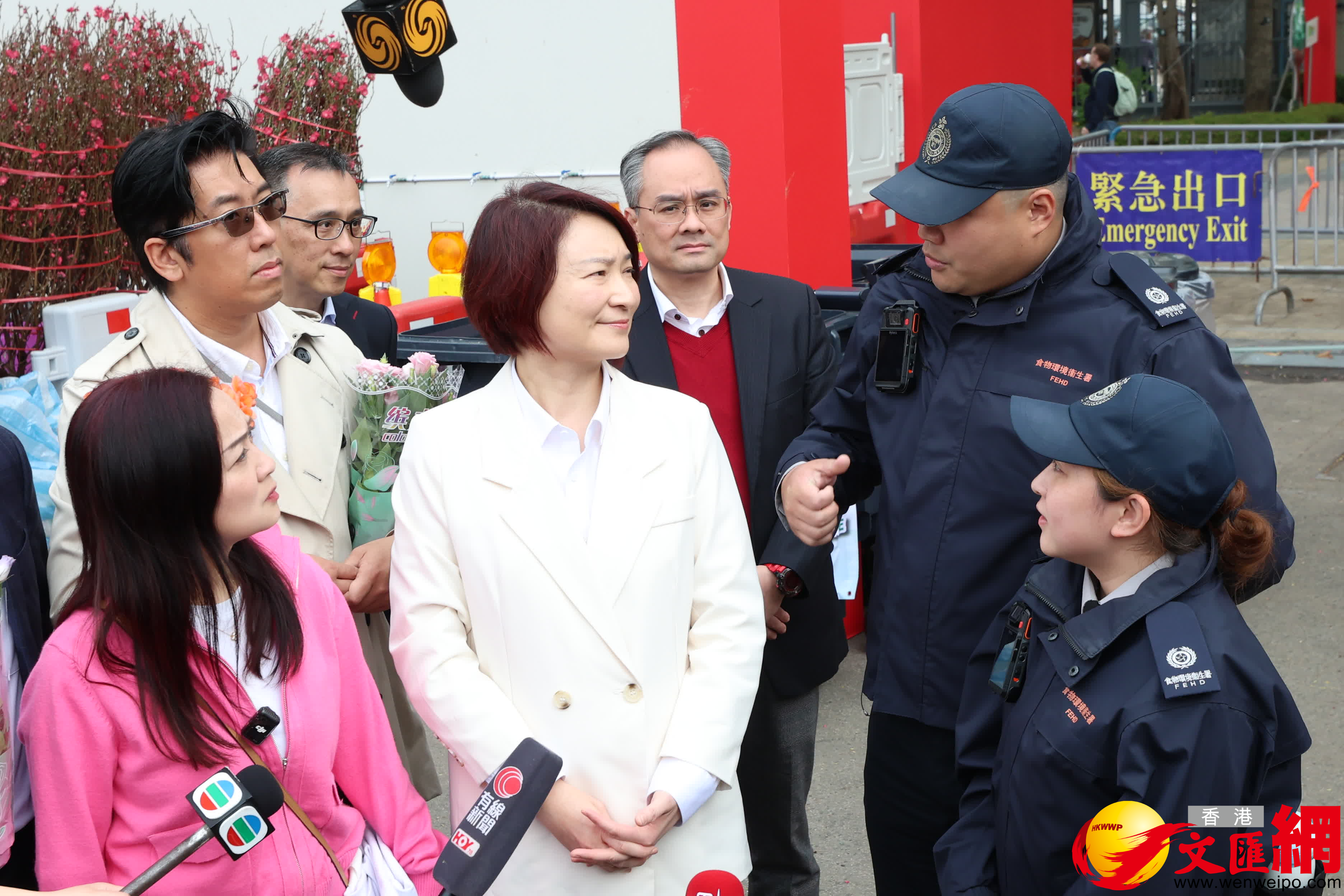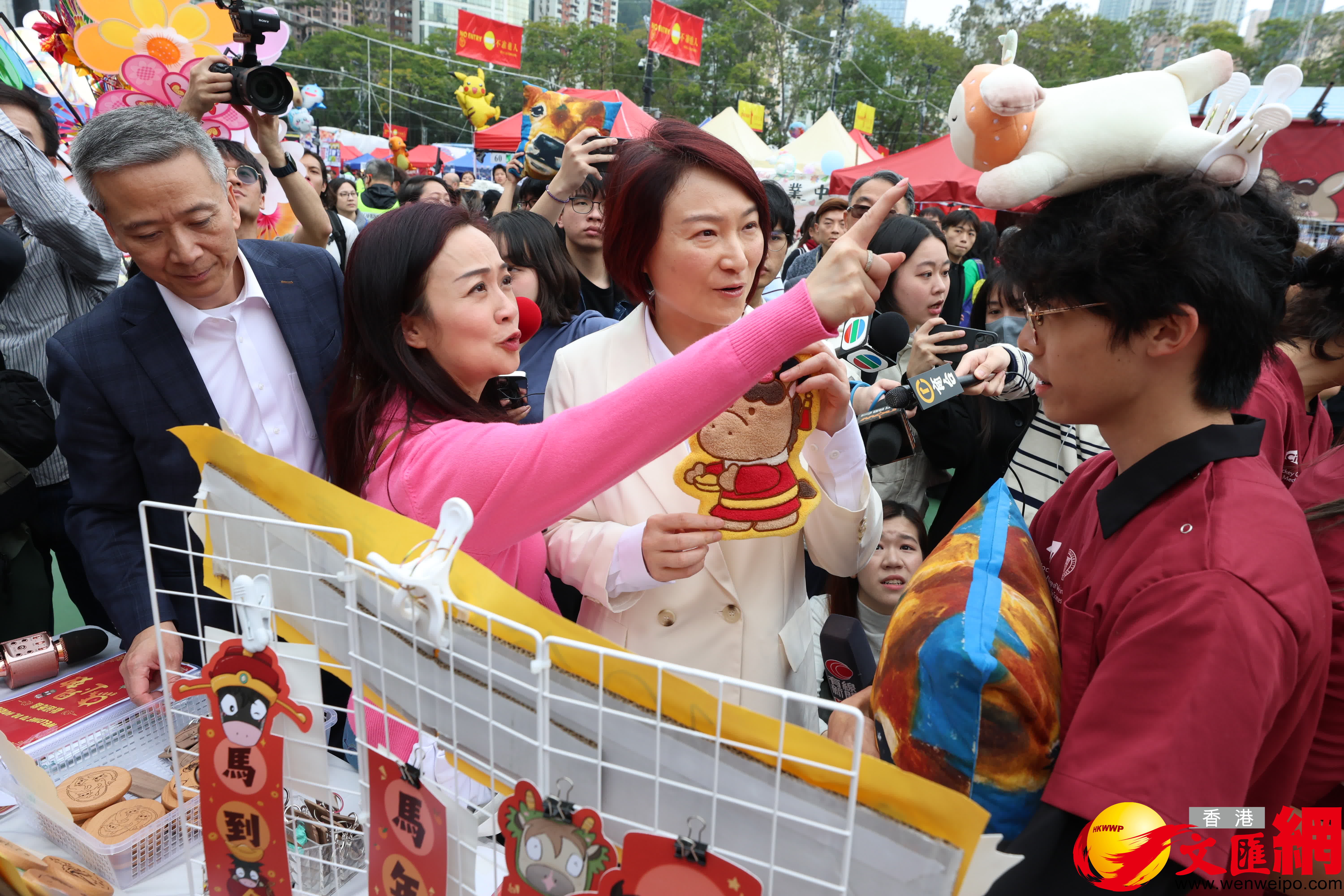 香港文匯報訊(記者萬霜靈 攝)立法會主席李慧琼聯同食物安全及環境衞生事務委員會員及其他議員,今日(12日)下午到訪維園年宵市場,了解年宵市場的運作情況。