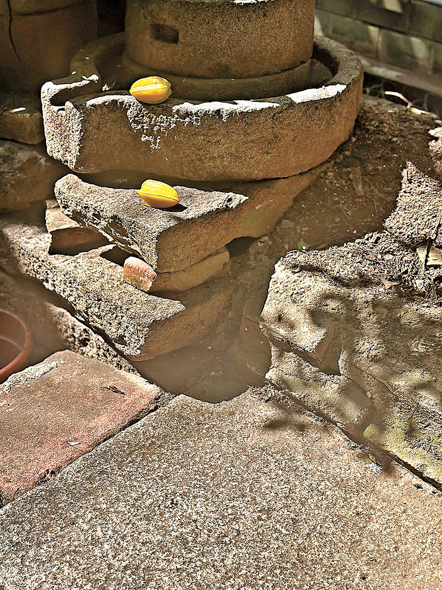 楊桃樹下,疊滿舊時鄰居古村屋改建剩下來的長條麻石板。那年向收集數量更多的堂哥,求取方整一塊,供母親共閨蜜們坐下悠閒聊天,剛好一塊特別既厚且方正,謝堂哥饋贈,置樹下,成為我對母親記憶其一深刻風景。