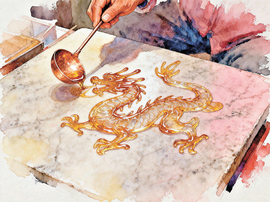 前些日子在胡同深處遇見一位做糖畫的老師傅,支着個小攤,爐上銅鍋溫着糖稀,勺子一傾一提,龍鳳、小鳥、孫悟空,轉眼就活靈活現地躺在石板上。我沒買,只站在旁邊看。一個孩子指着畫好的鳳凰問:「爺爺,你叫啥名字呀?」老師傅笑着搖頭:「名字不重要,糖畫甜就行。」他頓了頓,又補了一句:「我爹做了一輩子糖畫,也沒人知道他叫啥,可街坊娶媳婦、孩子滿月,都指定要他畫的糖鳳凰——說『那個甜手』做的,吉利。」