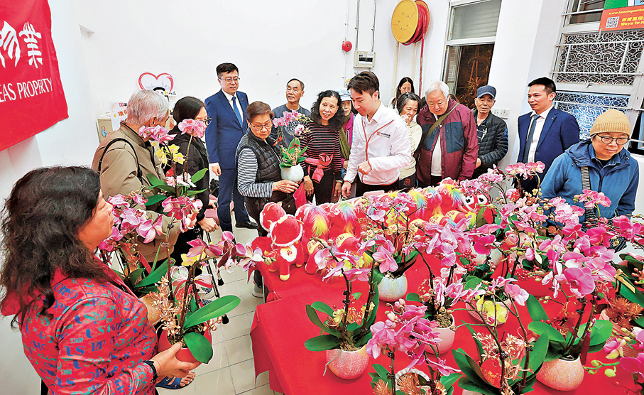 中海物業義工隊成員陳太補充,該邨地處偏遠,居民要前往市區逛花市並不容易,部分長者更因行動不便而卻步,公司遂在邨內舉辦「新春行花市」活動,採購蘭花、協調場地,讓居民在家門口感受年宵氣氛。