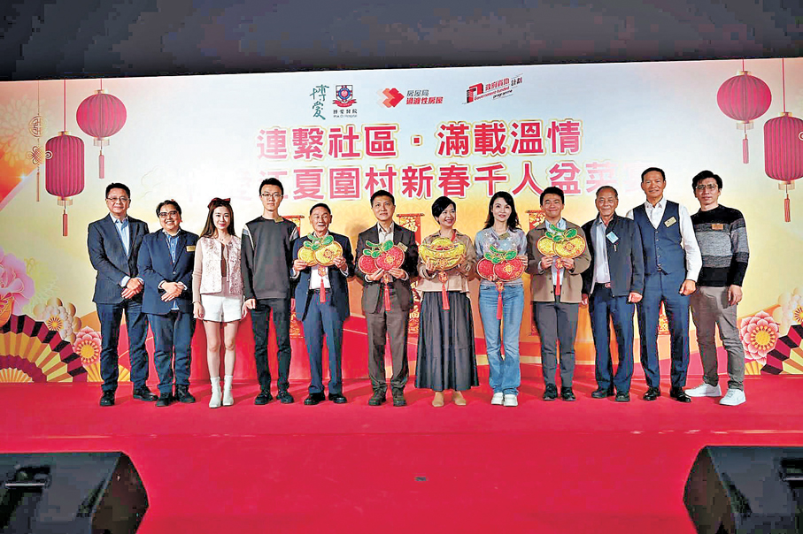 臨近新年,博愛醫院前日於元朗過渡性房屋江夏圍村主辦千人盆菜宴,共有1,200人參與,其間設有歌星表演及文娛節目、派發福袋等環節,更令參與居民珍惜的是久別重逢的喜悅,談笑間重溫昔日的街坊情。