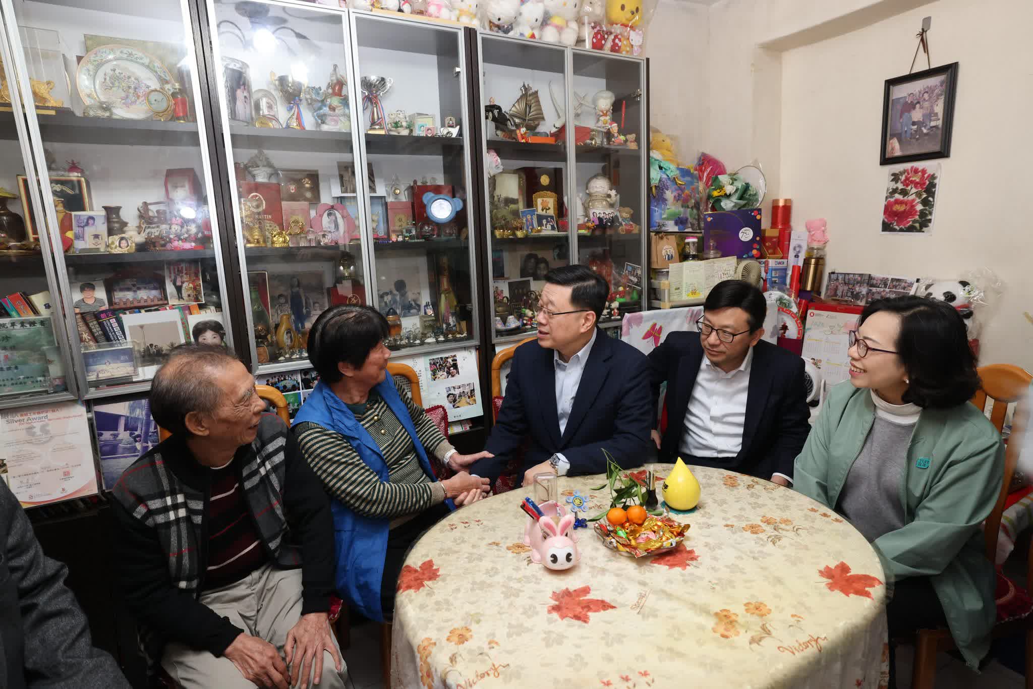 香港文匯報訊(記者 蕭景源)行政長官李家超今日(13日)率領民政及青年事務局局長麥美娟、勞工及福利局局長孫玉菡、民政事務總署署長杜潔麗及油尖旺民政事務專員李家維率先展開地區探訪,向市民送上關懷與祝福。李家超在其facebook專頁帖文,指在油麻地駿發花園分別探訪一名獨居長者和一個雙老家庭, 又參觀屋苑內的長者地區中心,與一群長者齊高歌、玩遊戲,同慶新歲。