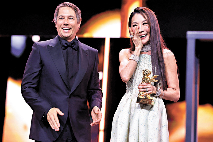 香港文匯報訊(記者 安夏)第76屆柏林國際電影節(Berlinale)於當地時間2月12日晚盛大開幕,華裔女星、奧斯卡影后楊紫瓊(Michelle)獲頒象徵終身成就獎的「榮譽金熊獎」,成為柏林影展史上首位獲得此殊榮的華人演員,再度寫下影壇歷史新一頁。楊紫瓊領獎時難掩激動,一度淚灑現場,並感性提及已故的父親,場面動人。