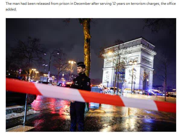 檢方補充稱,嫌疑人為法國籍,出生於1978年,曾因在比利時實施謀殺未遂被判恐怖主義罪名成立,在服刑12年後,於2025年12月剛剛出獄。