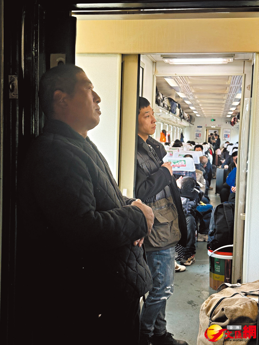 他的歸途,比旁人更曲折幾分:從海南出發,坐12小時大巴到廣州,再擠上這趟北上的綠皮車,沒有座位。軟臥票價八九百,他捨不得,打算硬站23小時到石家莊,再轉車去縣城接上遠嫁的妹妹和外甥,連夜驅車1,000多公里回重慶巫山老家。「父親剛去世,母親身患數病,妹妹說,今年一定要一起過年。」