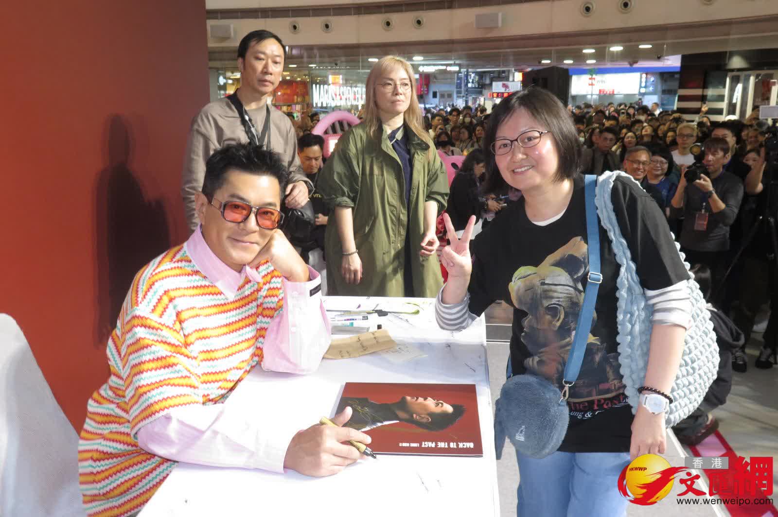 一向愛穿黑色的古仔今日一身充滿色彩,他笑說:「今日情人節,所以着鮮色點,平時好少着,好難搵衫要去買一套。」古仔已23年沒出過唱片,今次再出碟搞簽名會,不少歌迷通宵排隊爭200位簽名名額,被問到會否臨場為多些粉絲簽名?古仔笑說:「我個名比較長,嘥墨水多,看情況啦,部電影(《尋秦記》)已經加長,人不可以加咁長喇!」