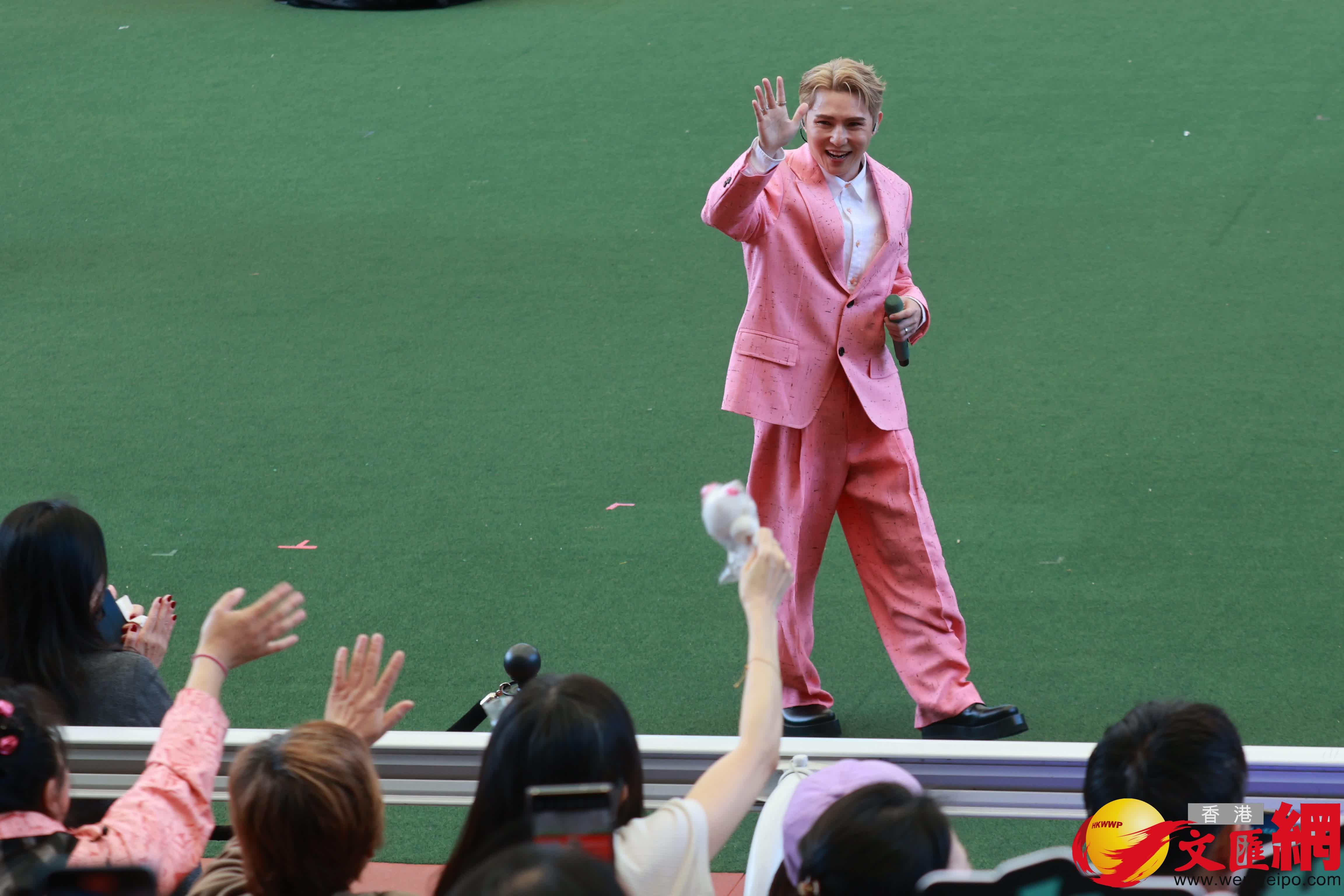 事後問到輝智為何不跳舞,他笑道:「我仍在練習中,所以用眼神跳,大家知我不是跳舞底,新一年都考慮去學,跳舞已列入我人生清單之一。」身為馬主的輝智表示愛駒已退役,苦笑唯一一次勝出賽事,他就沒有份拉頭馬,感到十分可惜,他說:「看情況決定會不會再養馬,始終自己不是專業。」首次在沙圈獻唱的劉威煌直言緊張,能夠在新年前、情人節及公司賽馬日上演出,對他份外有意義。威煌今年訂下目標要養好身體,因自知年紀不小,早前做身體檢查時,醫生告知他血管有變細,要多做運動來保持體能。已是第二次在沙圈演出的張與辰,已沒有上次的緊張感,高興與拍檔不約而同選了粉紅色的歌衫來應景。