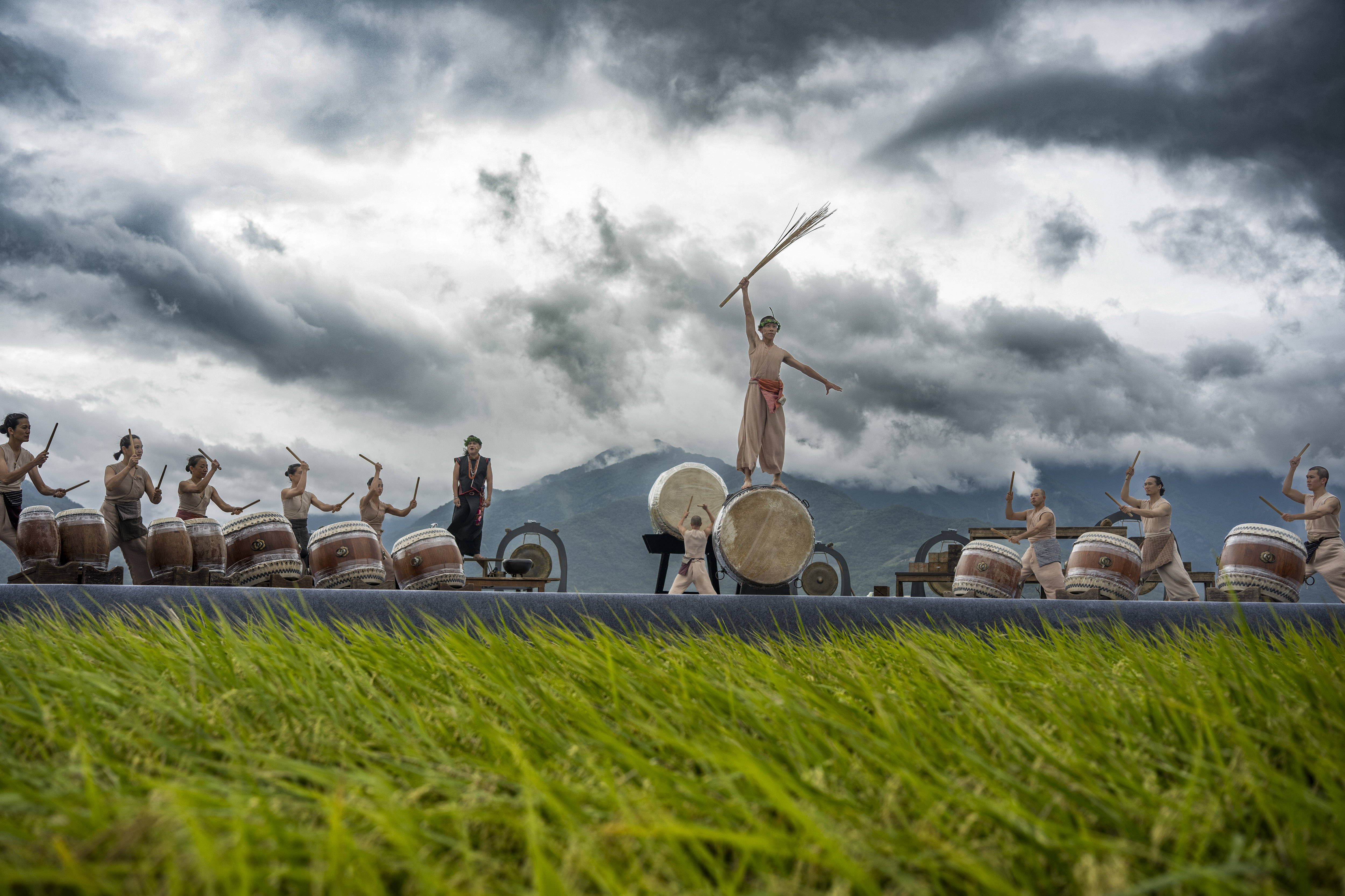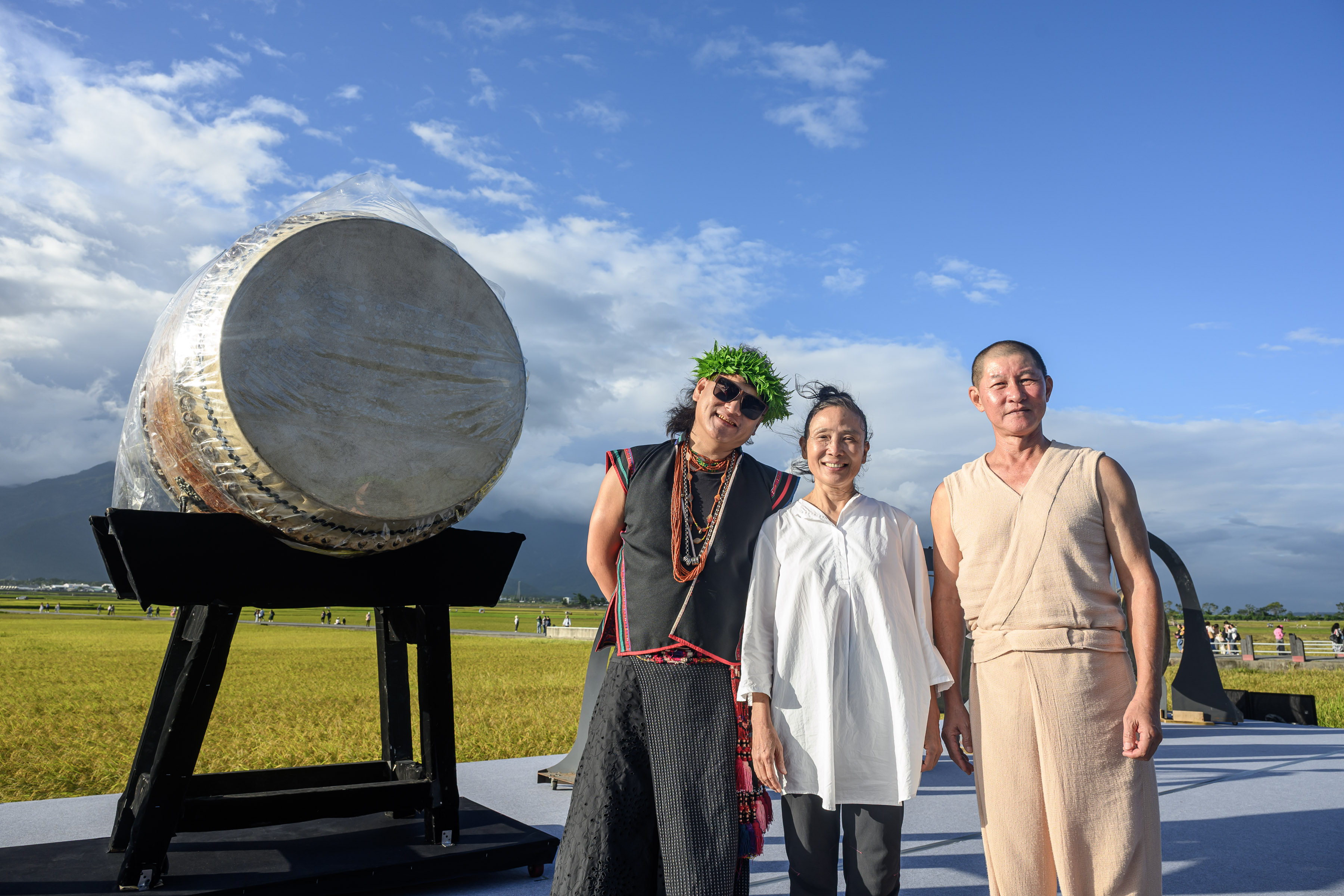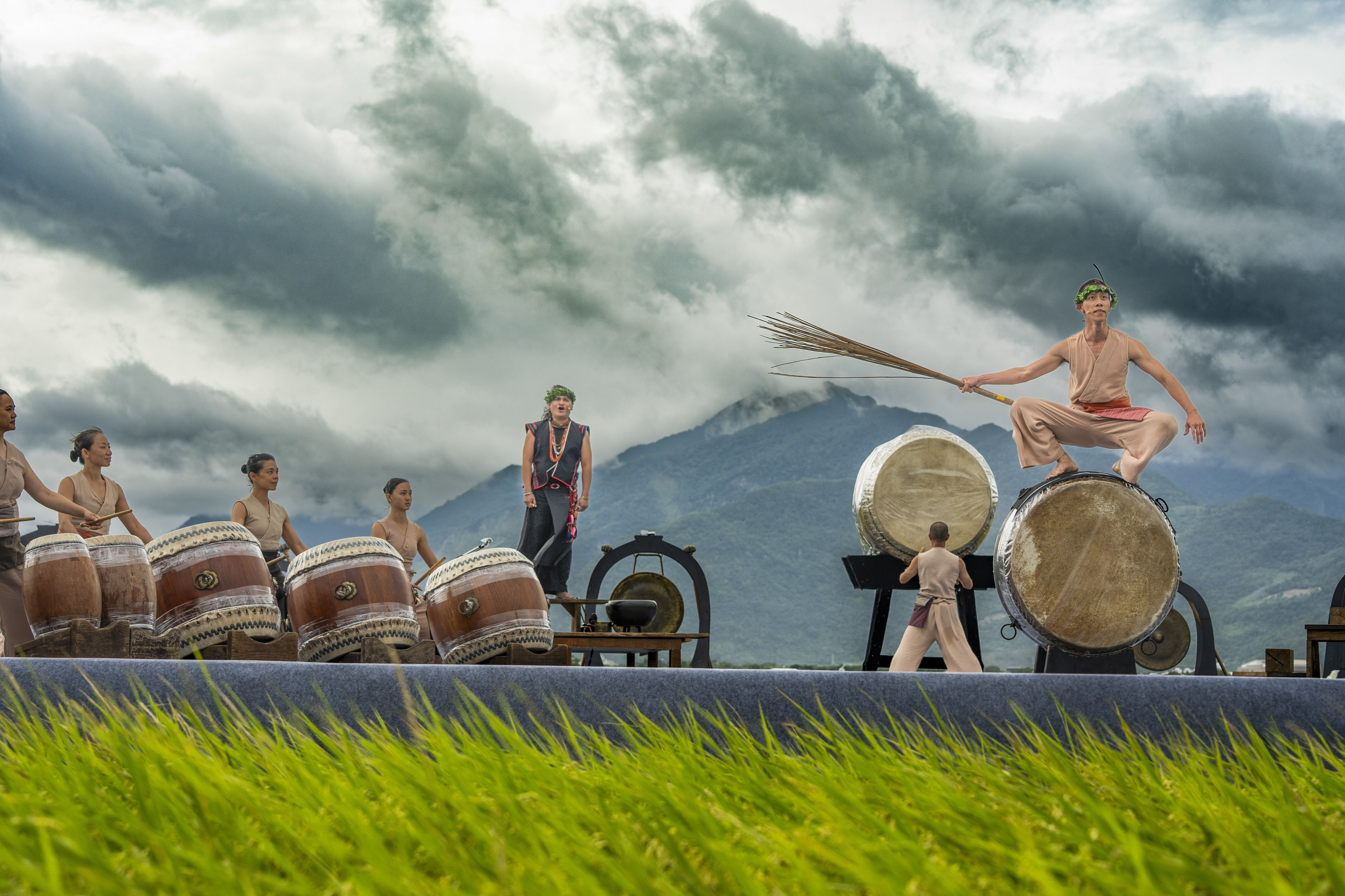 將舞台與自然融合,成功與否,大概在於作品是否真正與周遭環境共呼吸。池上秋收稻穗藝術節去年請來優人神鼓與卑南族歌手桑布伊攜手合作,帶來全新作品《我回來了——做一部作品給自己的靈魂!》,演出將傳統樂器演奏與族語吟唱,和優人震撼的鼓藝表演相融合,展現少年踏上成年禮的旅程,經歷自然的考驗,學習與萬物對話的故事。