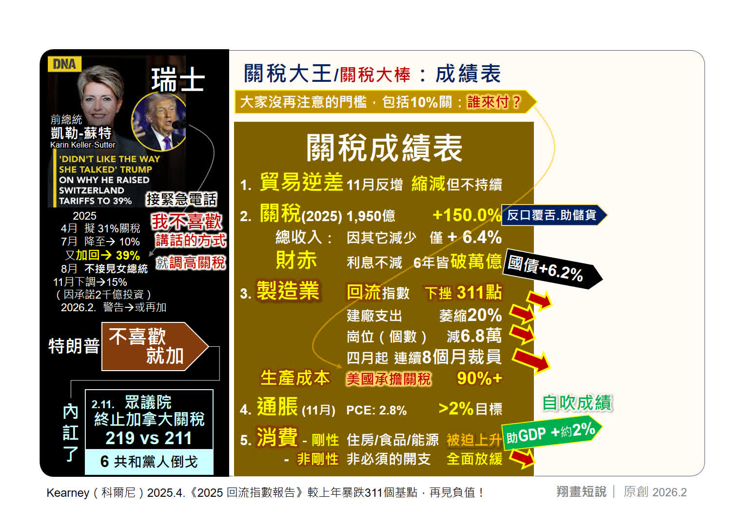 從表面看,特朗普的貿易戰有「成績」:一年來關稅收入1,950億美元,年增150%;獲多國巨額投資承諾;中國對美出口降2.0%;美國GDP維持約2%正增長。