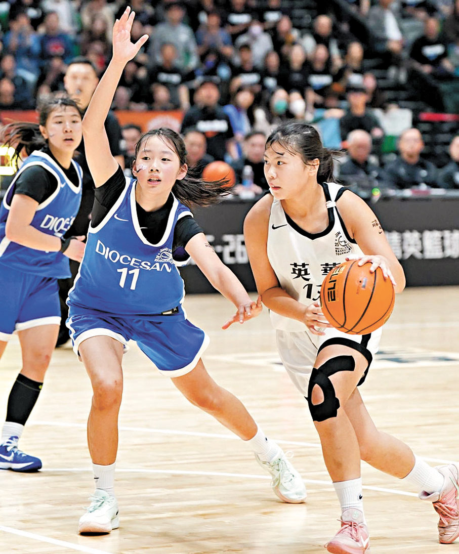 Nike全港學界籃球精英賽四強昨日在啟德體藝館舉行。其中女子組方面,英華女學校面對拔萃女書院,前者在最多落後19分下,憑鄭芷彤完場前四秒射入三分球令比賽進入加時,最終英華更以56:55反勝對手,相隔17年再晉級決賽。英華女學校今日將與協恩中學爭奪冠軍。本身並非「射手」的鄭芷彤透露去到完場前四秒,決定在三分線起手全因隊友被緊盯,故決定放手一搏,因此入球後十分激動。●圖/文:香港文匯報記者 張發兒
