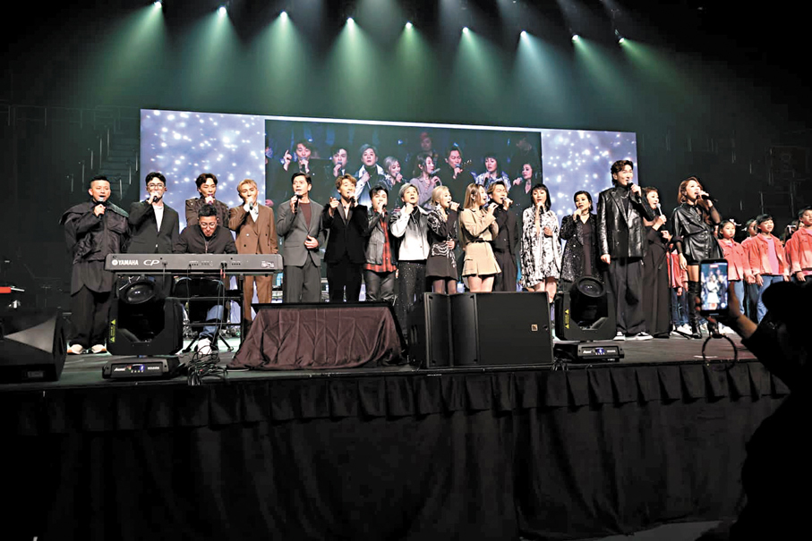 香港文匯報訊(記者 阿祖)《同心同路·聲動香港》慈善音樂會前晚在伊利沙伯體育館圓滿完成,是次音樂會匯聚近二十位藝人參與演出,當中包括胡渭康、湯寳如、韋綺姍、黃翊、何婉盈、文佩玲和李樂詩組成的限定組合Super Queens、譚嘉儀、陳國峰、顏志恒、支嚳儀、涂家堯、顏米羔、黃劍文、劉威煌等,他們用歌聲去感謝一班社工、義工及所有紀律部隊,一齊為香港打氣,祝福香港。