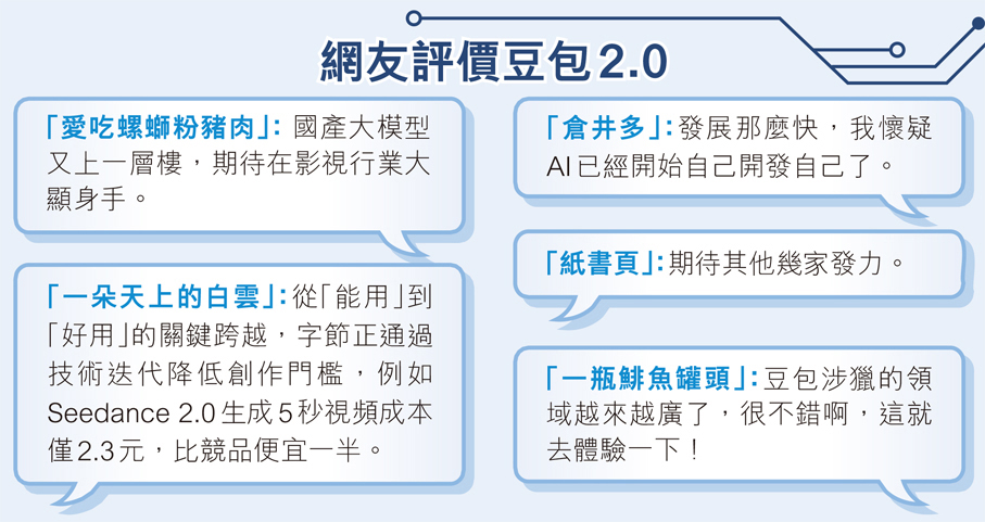 多位行業分析人士表示,當前國產大模型正加速邁過從技術展示「秀肌肉」到實際創造價值「真幹活」的臨界點。豆包大模型2.0與Seedance 2.0的接連發布,展現了字節跳動在「多模態+通用推理」雙軌布局上的技術縱深,也為行業提供了「技術創新+場景落地」的雙重參考。隨着推理能力的持續優化、使用成本的進一步降低,以及生態協同的不斷深化,國產大模型的商業化落地正在加速駛入深水區。
