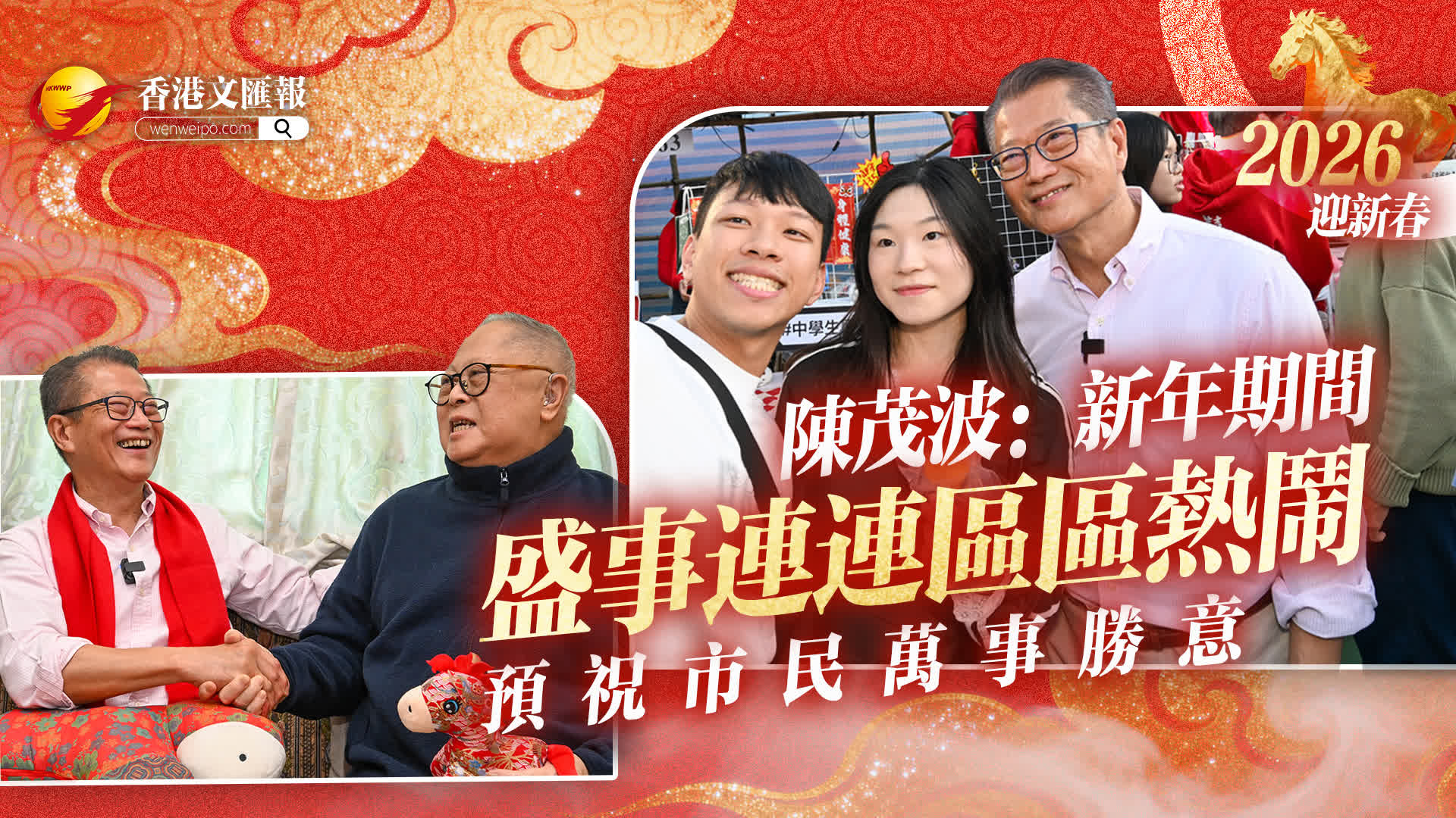 財政司司長陳茂波今日(15日)發表網誌,預祝市民丙午馬年萬事勝意、龍馬精神。他提到,今天是年廿八,大家正忙着為農曆新年做準備,自己也趁歲晚提早跟市民拜年,包括昨天(14日)跟同事們一起探訪了兩個家庭,並到訪維園年宵市場,向市民送上祝賀。