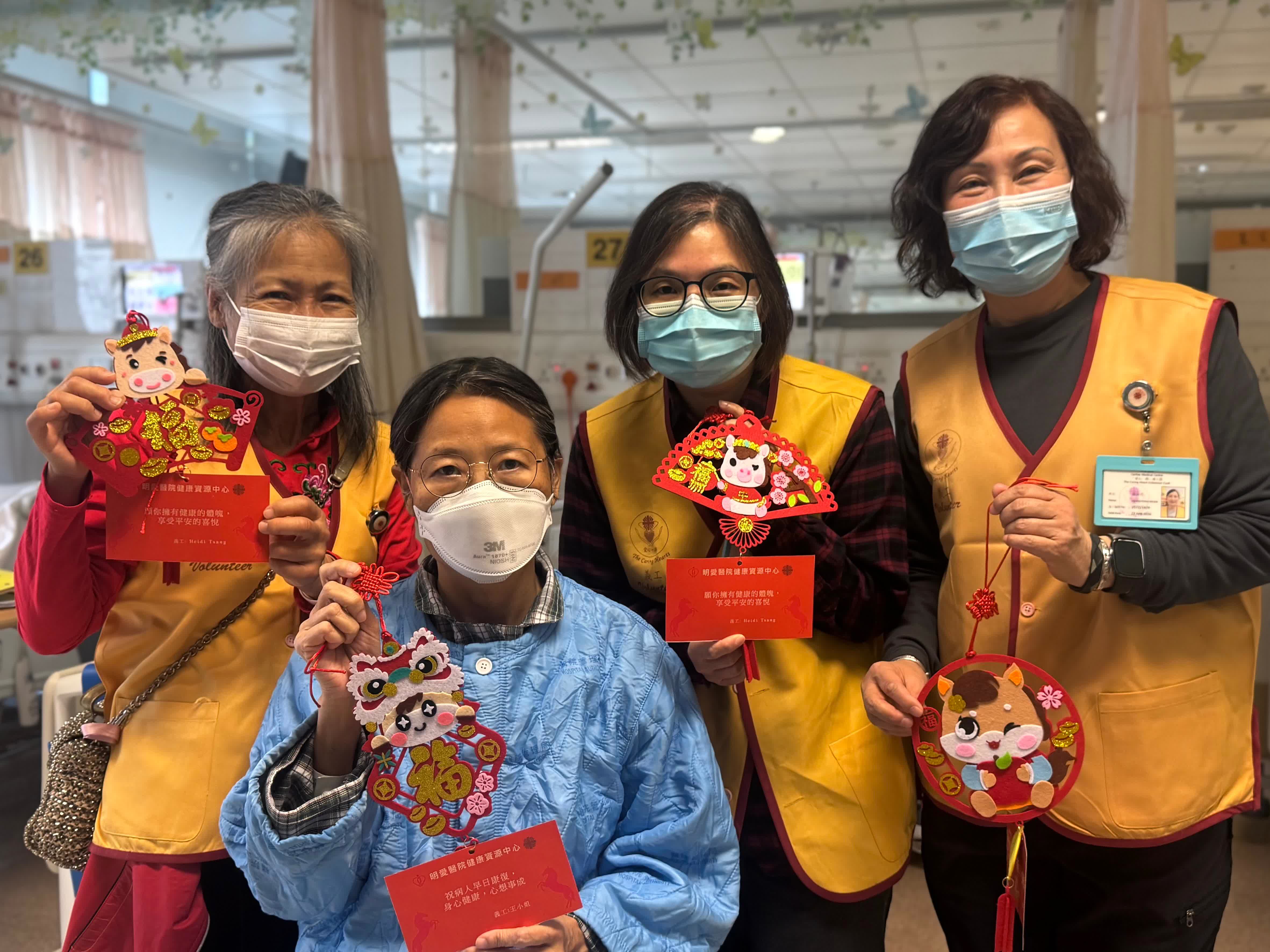 明愛醫院健康資源中心的義工團隊,早前為病人特製印有小馬圖案的新年掛飾,並帶同掛飾到病房探訪住院病人,送上寫滿節日祝福的心意卡,讓病人感受馬年的喜慶。