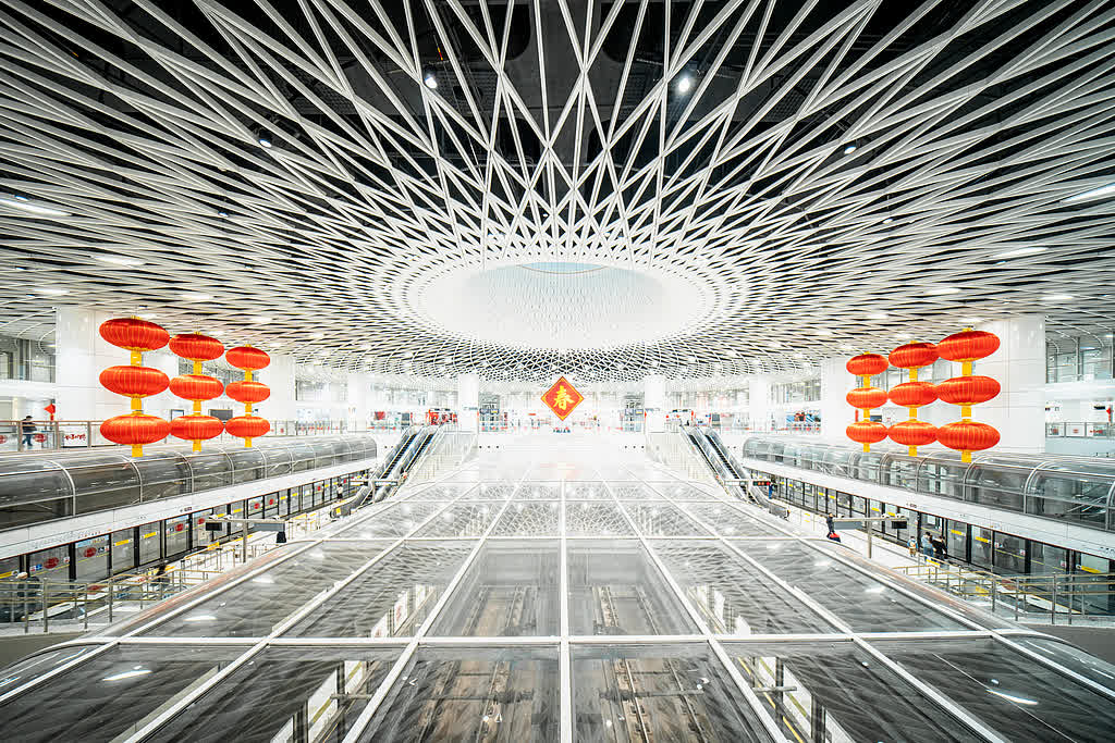 《驚蟄無聲》在廣東深圳多地取景拍攝,預告片發布以後,作為影片核心取景地之一的深圳崗廈北地鐵站,憑藉極具未來感的空間設計成為熱門打卡點。