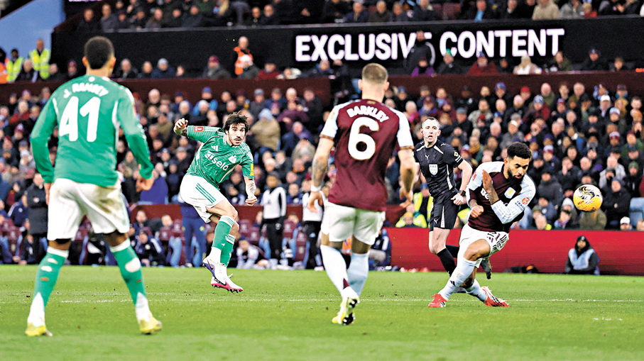 另一邊廂,由紐卡素和阿士東維拉在維拉公園球場合演的大戰戲劇性十足。14分鐘,維拉前鋒譚美阿巴謙接應杜格拉斯雷斯的罰球破網,有越位嫌疑但旁證並未舉旗,由於今場沒有VAR協助執法,故入球有效。隨後,維拉後衛盧卡斯迪治尼在禁區內用手擋出對手的傳中,但球證僅判罰球而非12碼。加上迪治尼在一次攔截中踢傷積及梅菲,球證僅判黃牌,令紐卡素球員極為不滿。