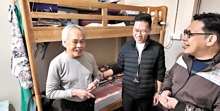 原本居於義華大廈劏房的甘伯伯,已搬入元朗過渡性房屋「悅安居」約半個月。何永賢提到,其政治助理歐陽文倩聯同「悅安居」營運機構香港青年事務發展基金會理事長陳文偉、協助甘伯伯覓得新住所的區域服務隊新家園協會總監(社區發展)梁秉堅日前前往探訪。