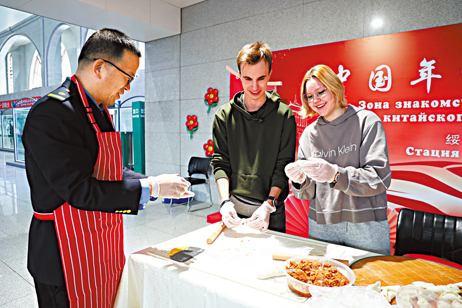 非遺體驗幾乎是外國遊客的中國遊必選項目。北京非遺體驗中心日前舉辦「歡樂中國年 非遺迎新春——外國人在中國過大年」主題活動,邀請多國外籍遊客在動手體驗、互動遊玩中讀懂中國年味,沉浸式感受人類非物質文化遺產——中國春節的獨特魅力。外籍遊客們在專業師傅指導下,動手擀皮、包餡、捏褶,學習製作中國春節特色美食餃子。來自墨西哥的遊客瑞娜達是第二次來中國,她興奮地說:「這是我第一次包餃子,把餃子捏上有點難,不過相信通過多練習我可以包得更好。」她說,中國的年味氛圍太濃厚了,「街上有很多裝飾,一切都非常漂亮,在這裏也祝大家新年快樂、健康幸福。」