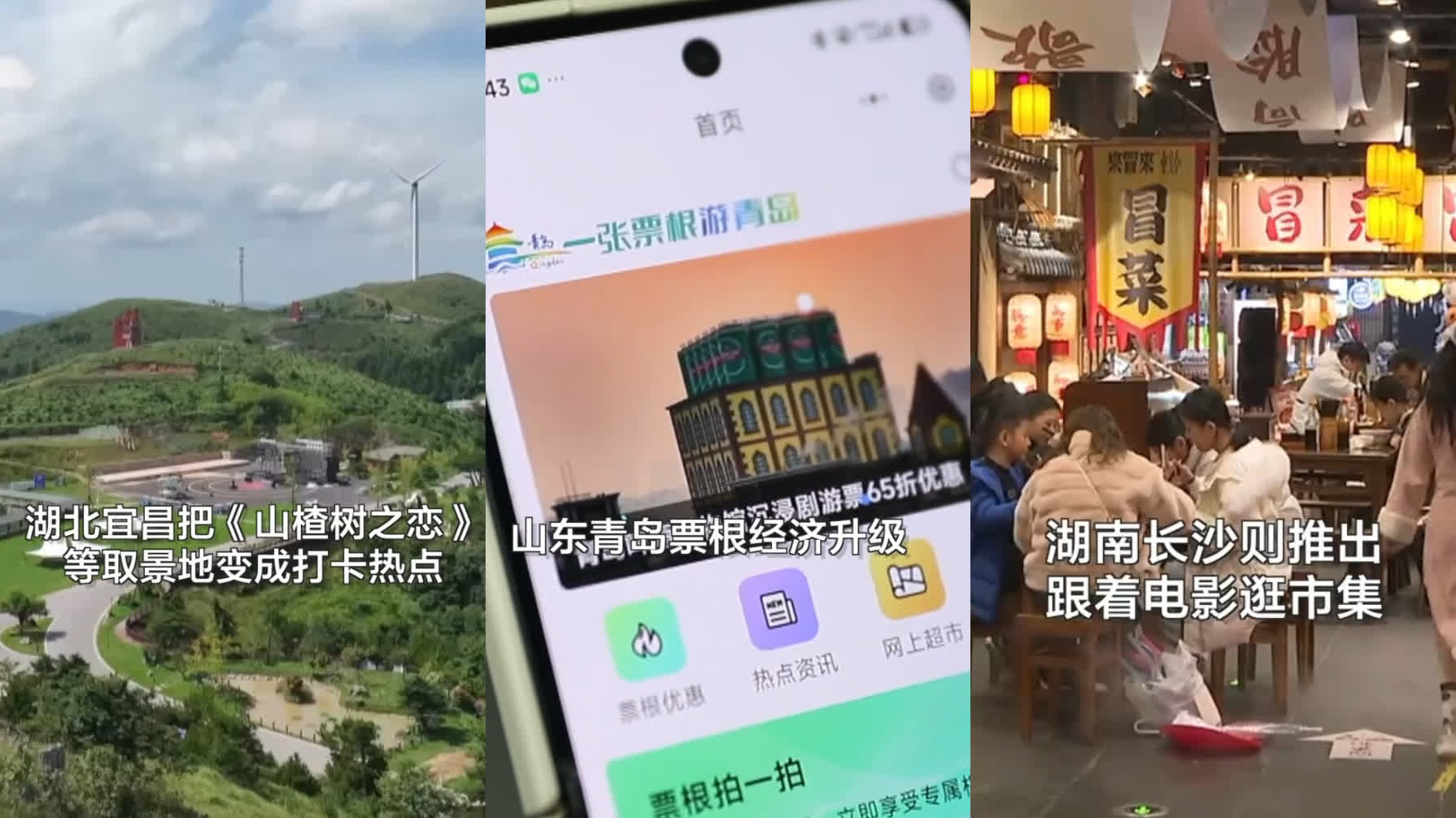 湖南長沙則推出跟着電影逛市集,臭豆腐、糖油粑粑、醬板鴨……看完電影就能開啟美食之旅。