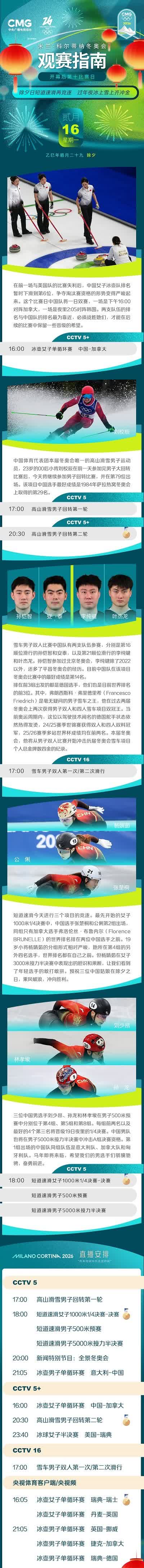米蘭-科爾蒂納冬奧會開幕後第十比賽日,除夕夜短道速滑再競逐,過年夜冰上雪上齊衝金。
