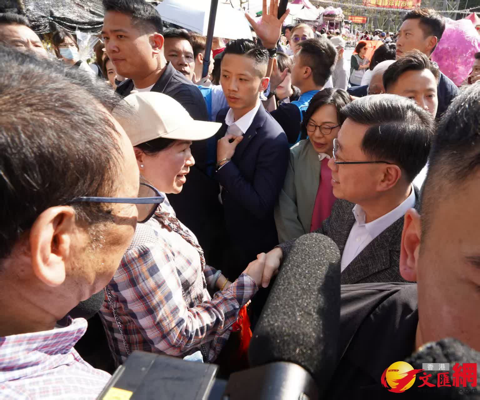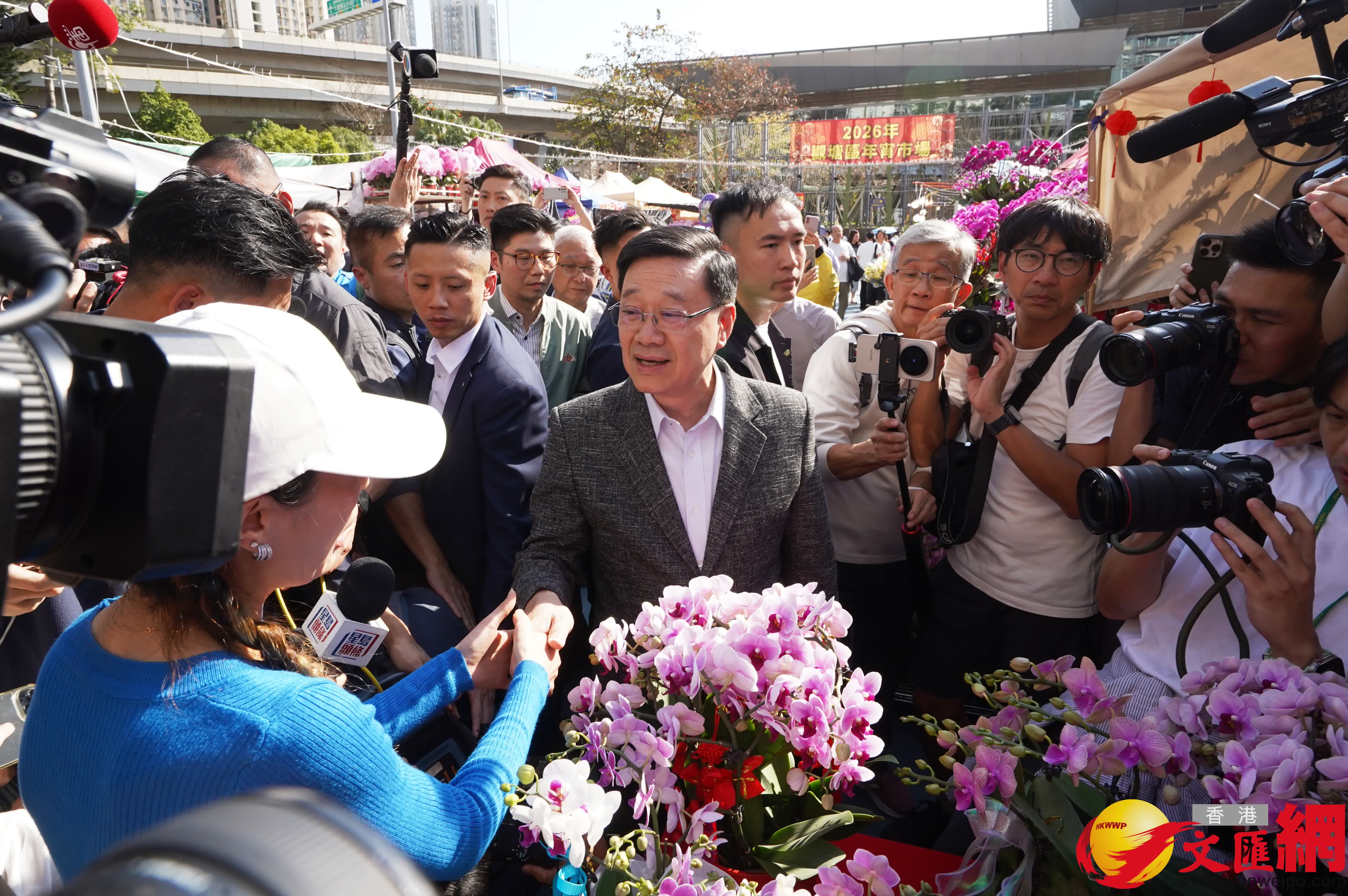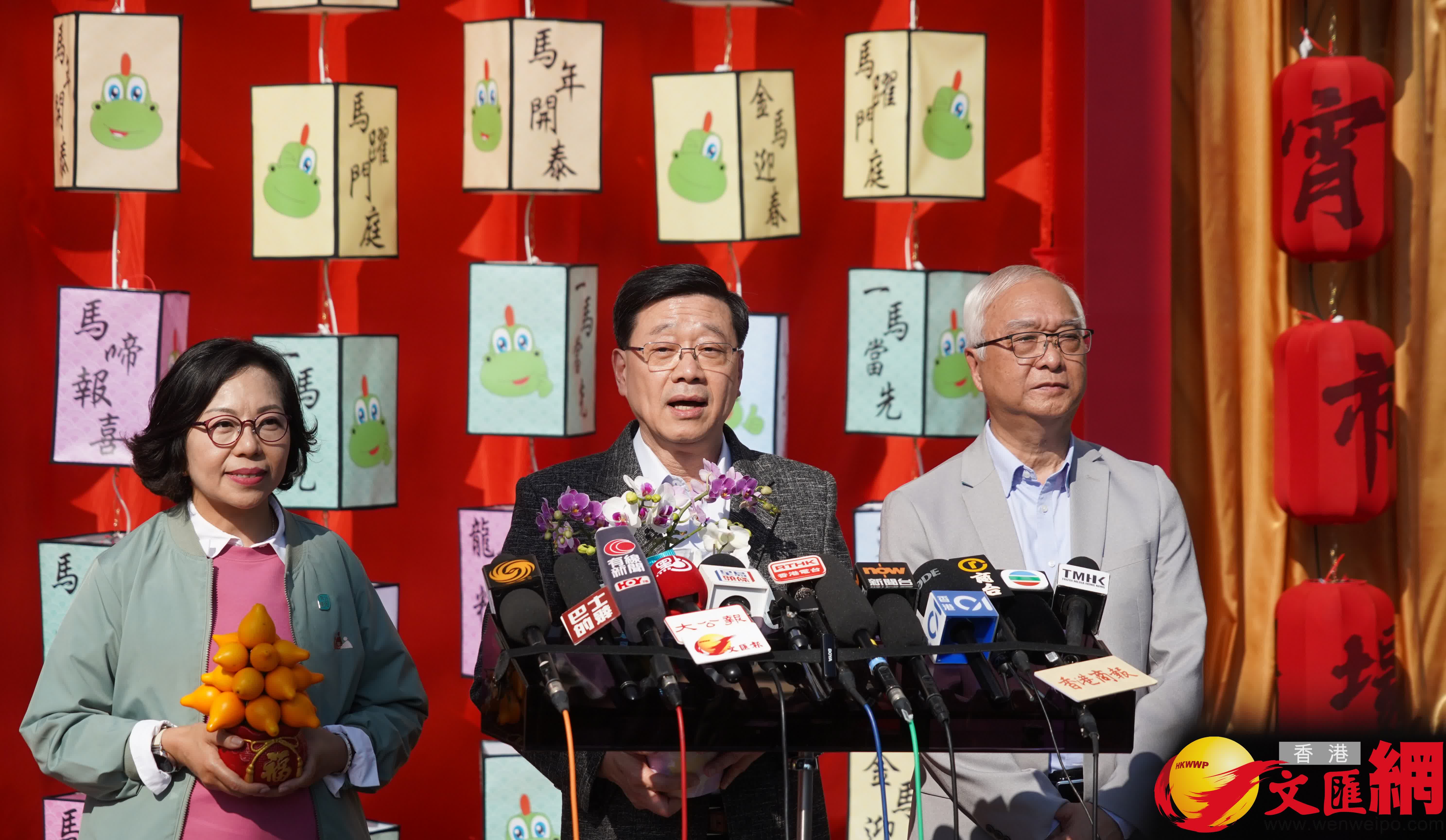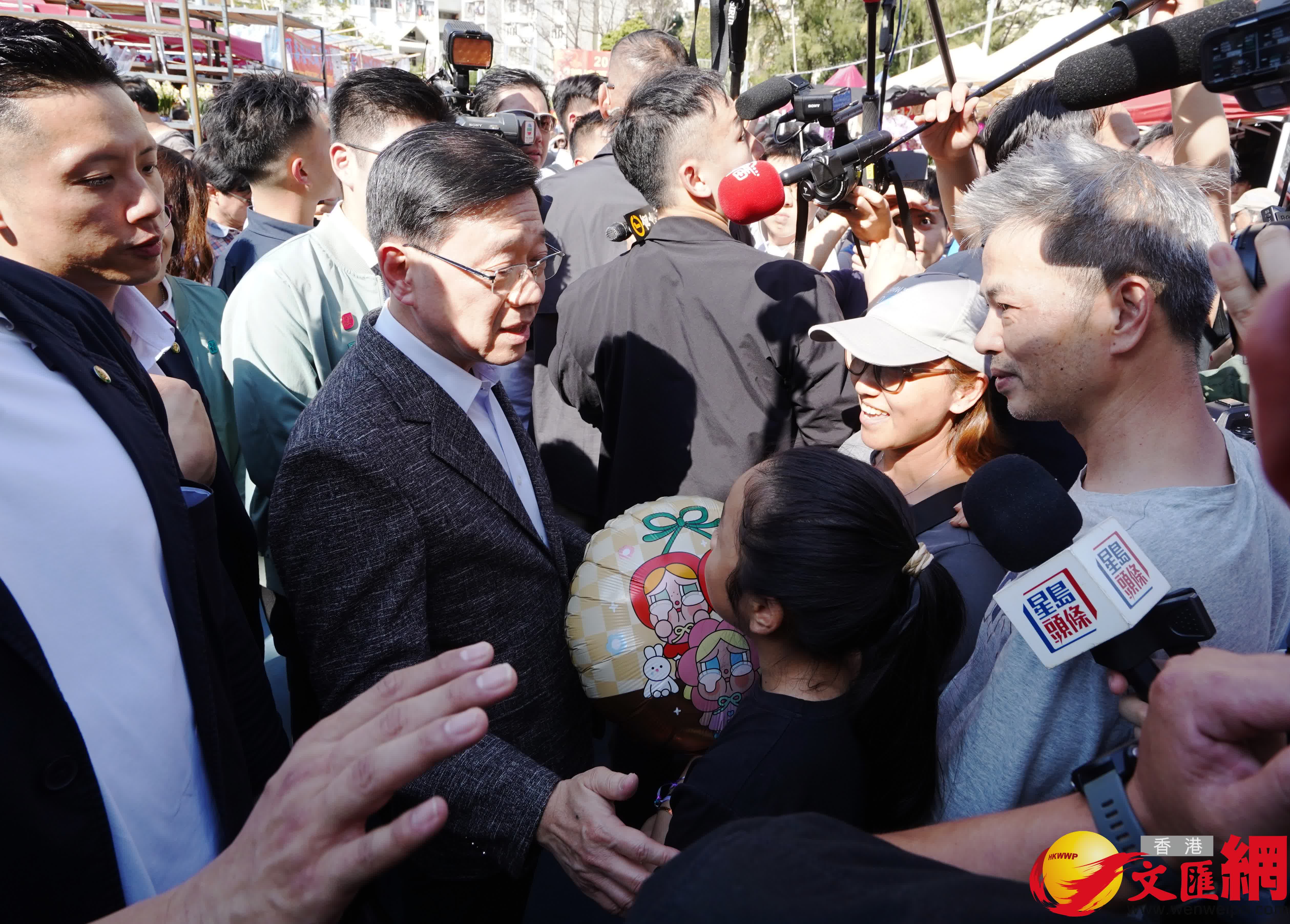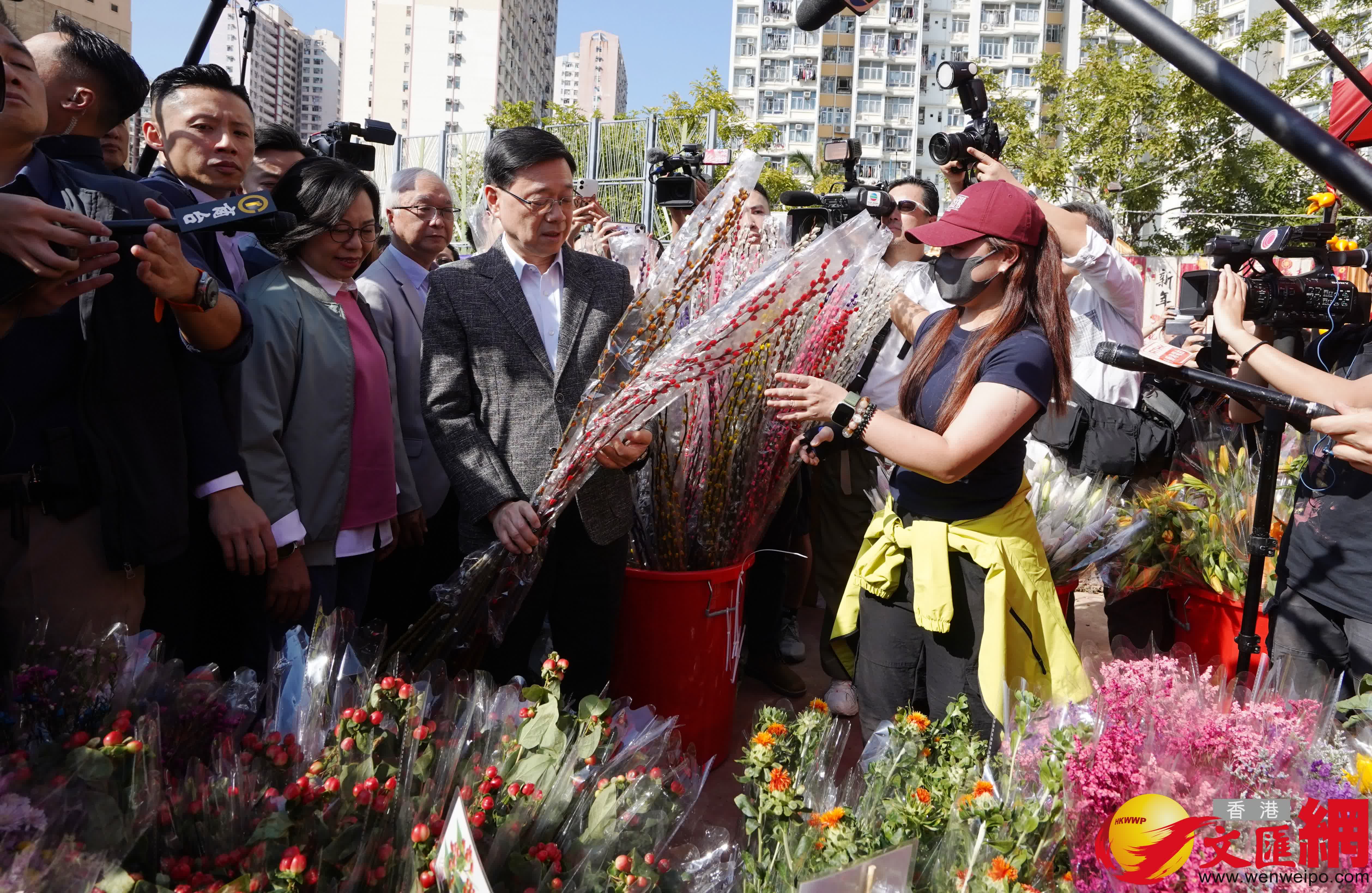 今日(16日)年廿九,是團年喜慶日子。行政長官李家超聯同民政及青年事務局局長麥美娟、環境及生態局局長謝展寰等官員,到訪觀塘遊樂場年宵市場,同市民共賀馬年。
