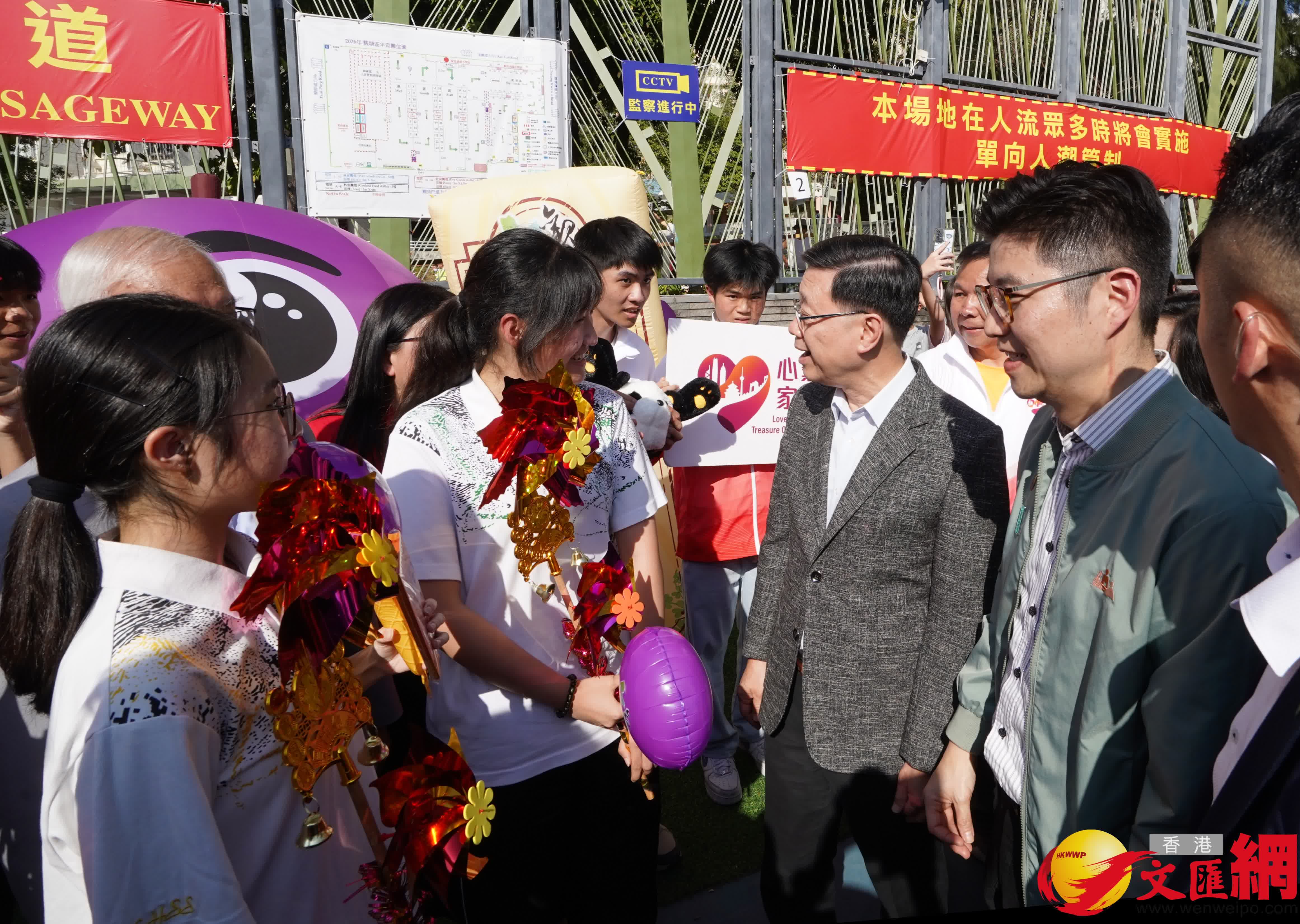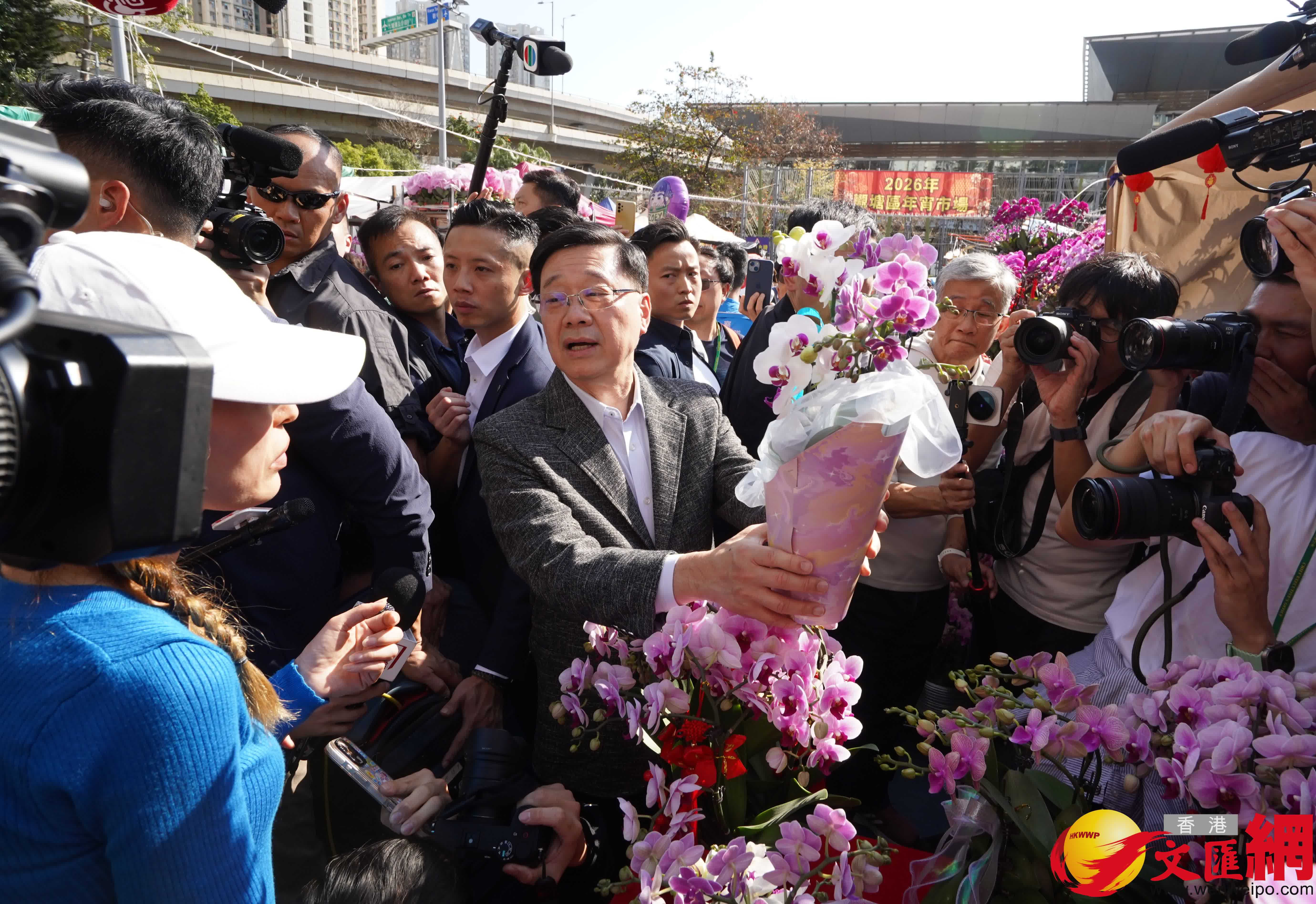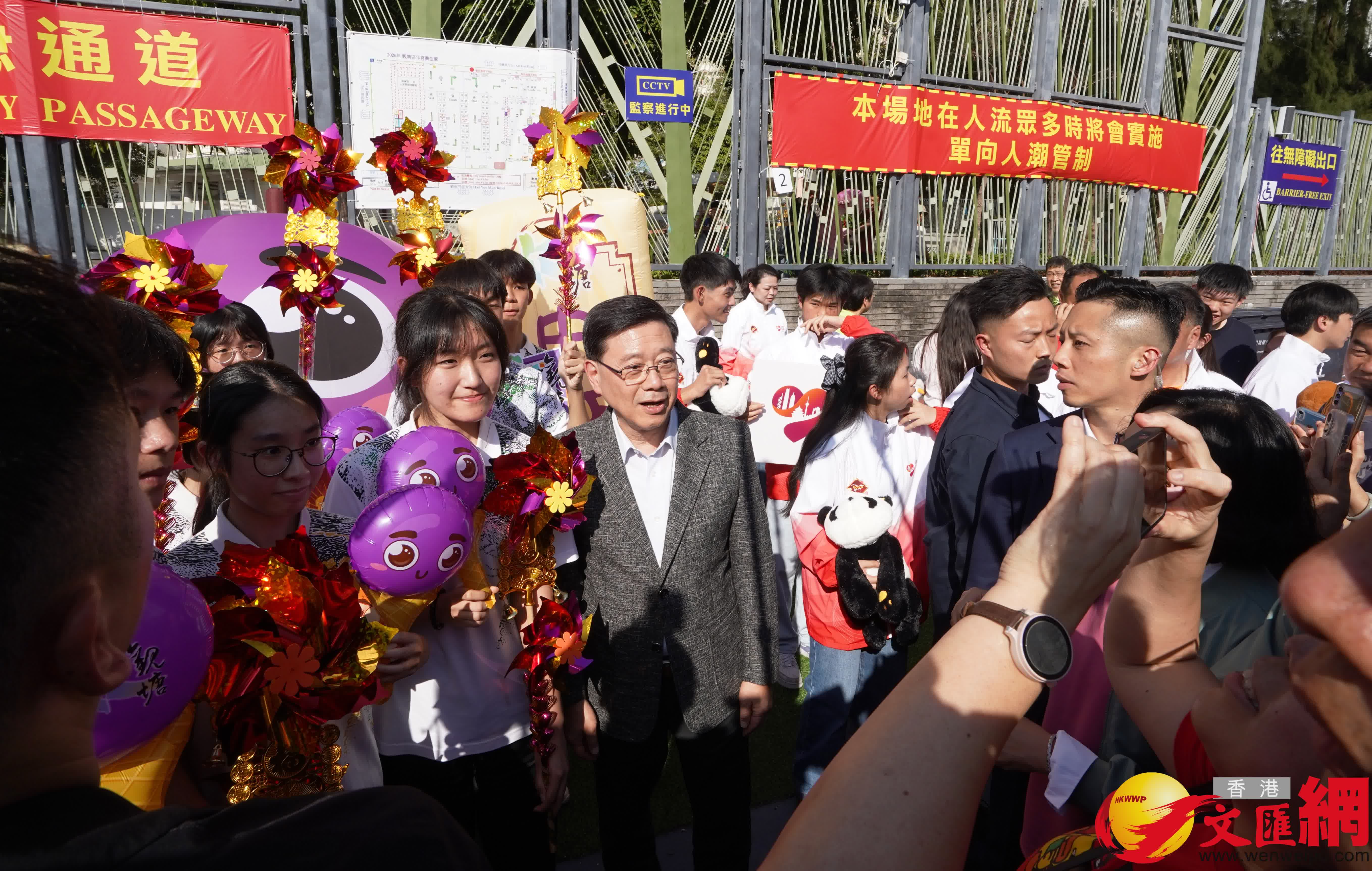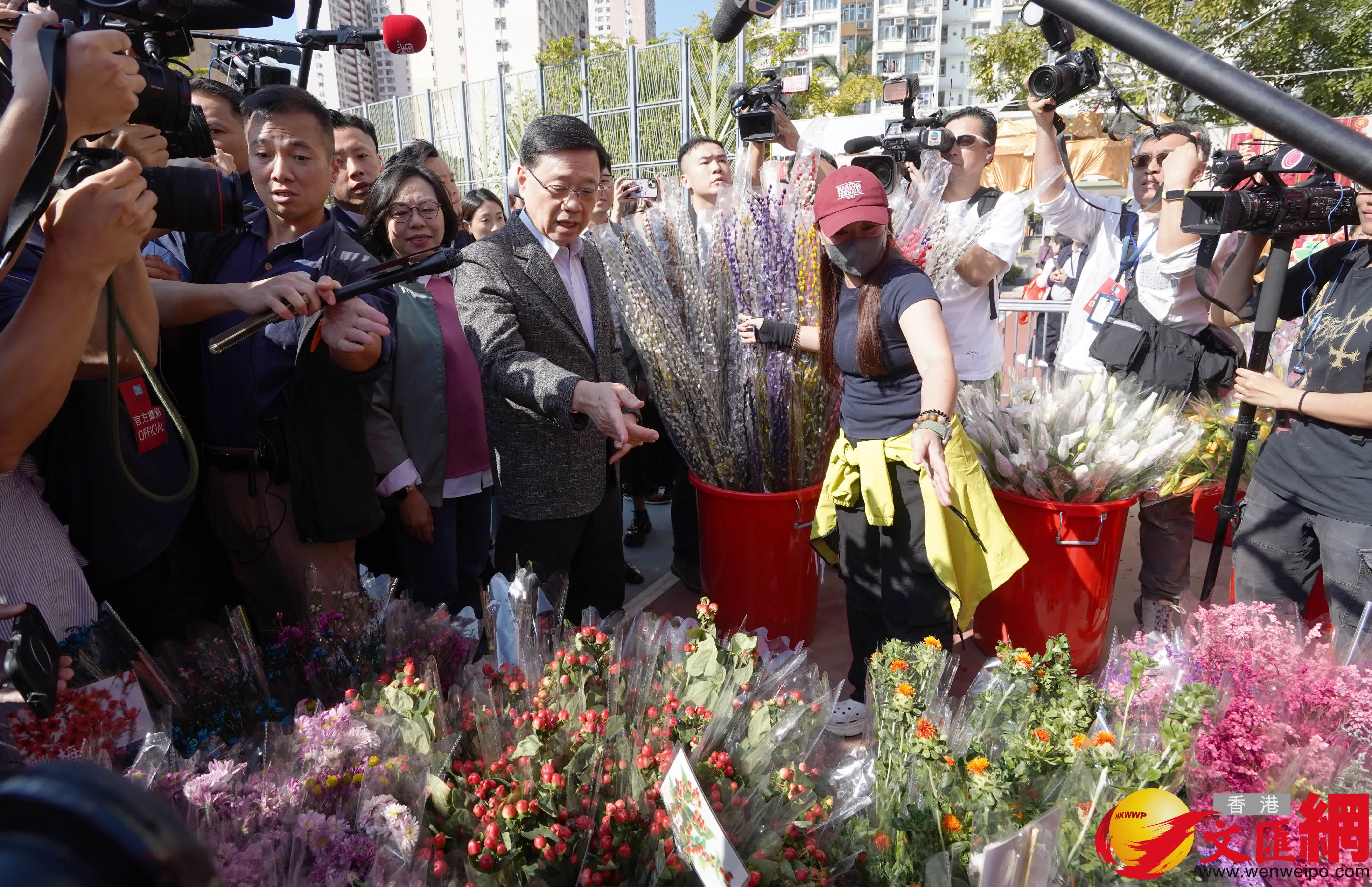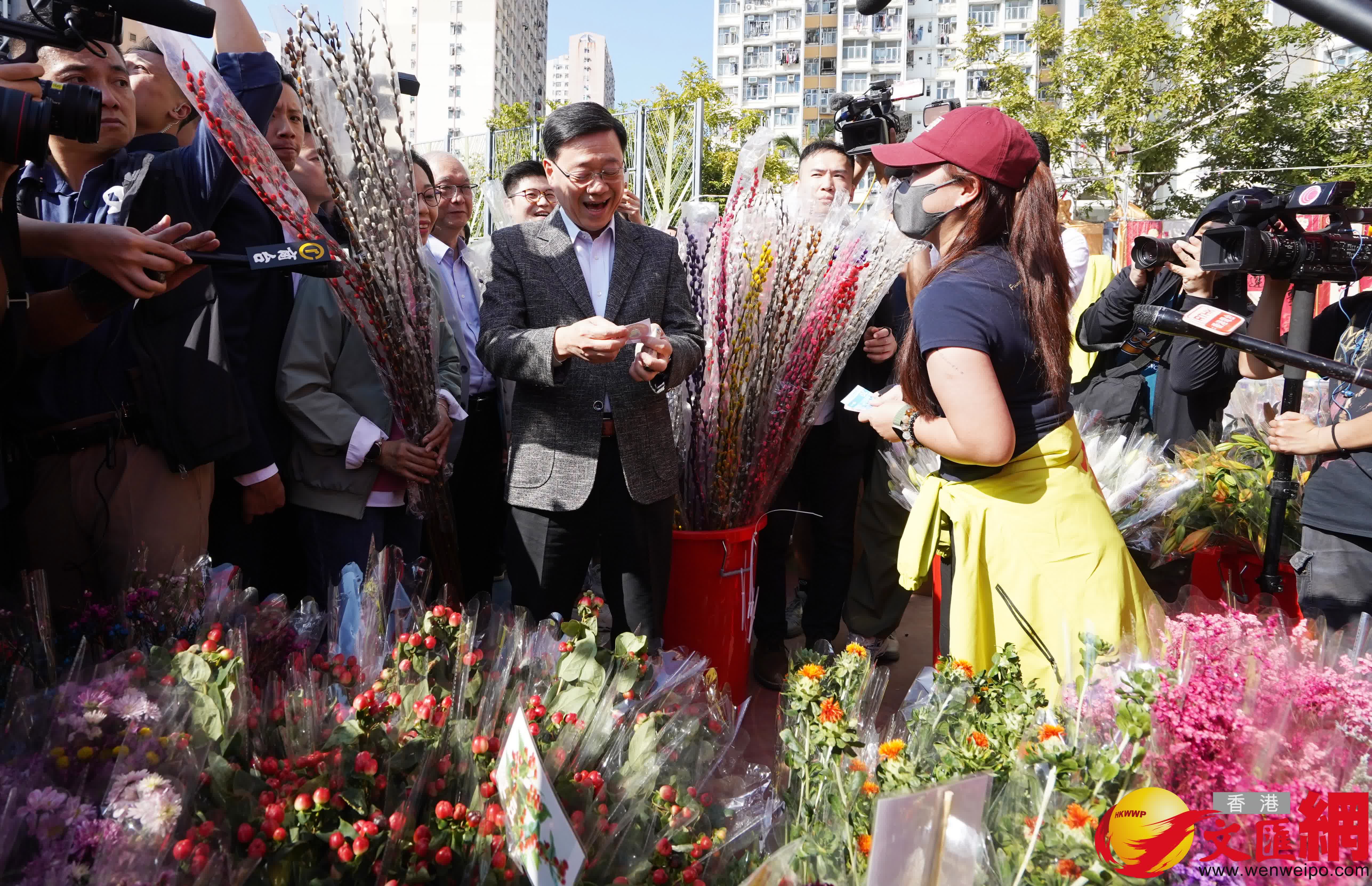 今日(16日)年廿九,是團年喜慶日子。行政長官李家超聯同民政及青年事務局局長麥美娟、環境及生態局局長謝展寰等官員,到訪觀塘遊樂場年宵市場,同市民共賀馬年。