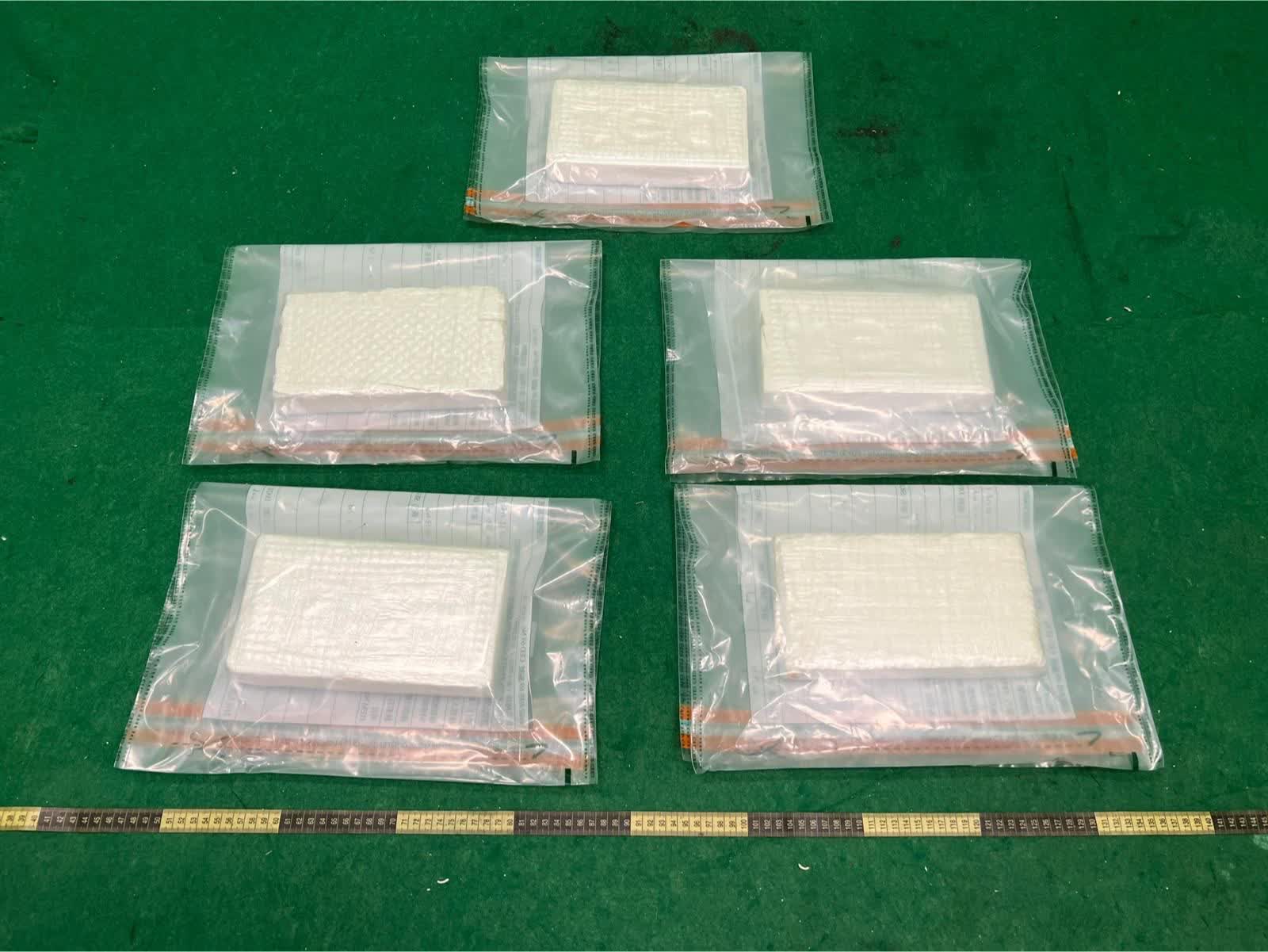 首宗案件涉及一名昨日從馬來西亞檳城飛抵本港的56歲男旅客。海關人員清關時,在其行李內發現約5公斤懷疑可卡因,遂把他拘捕。