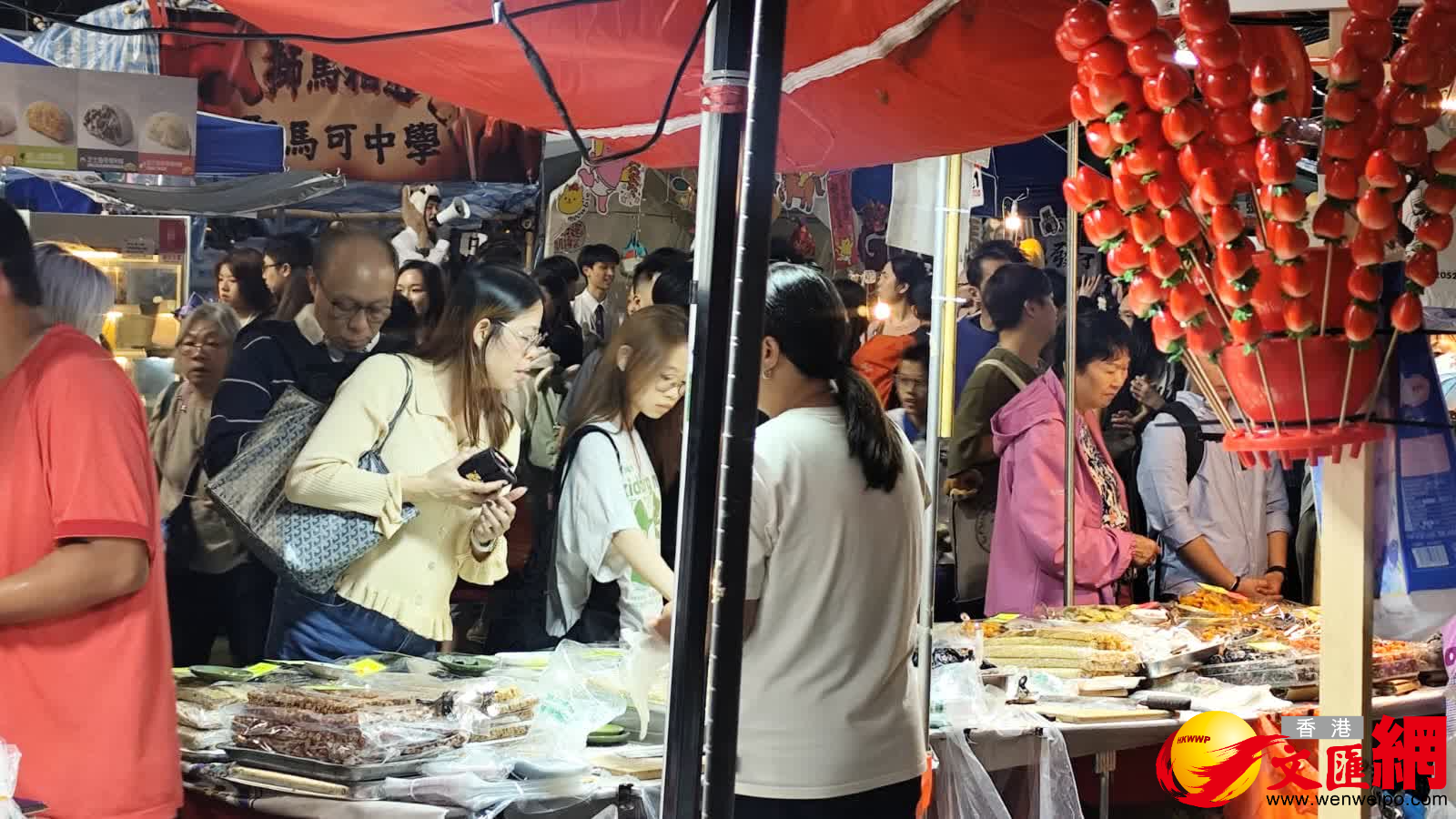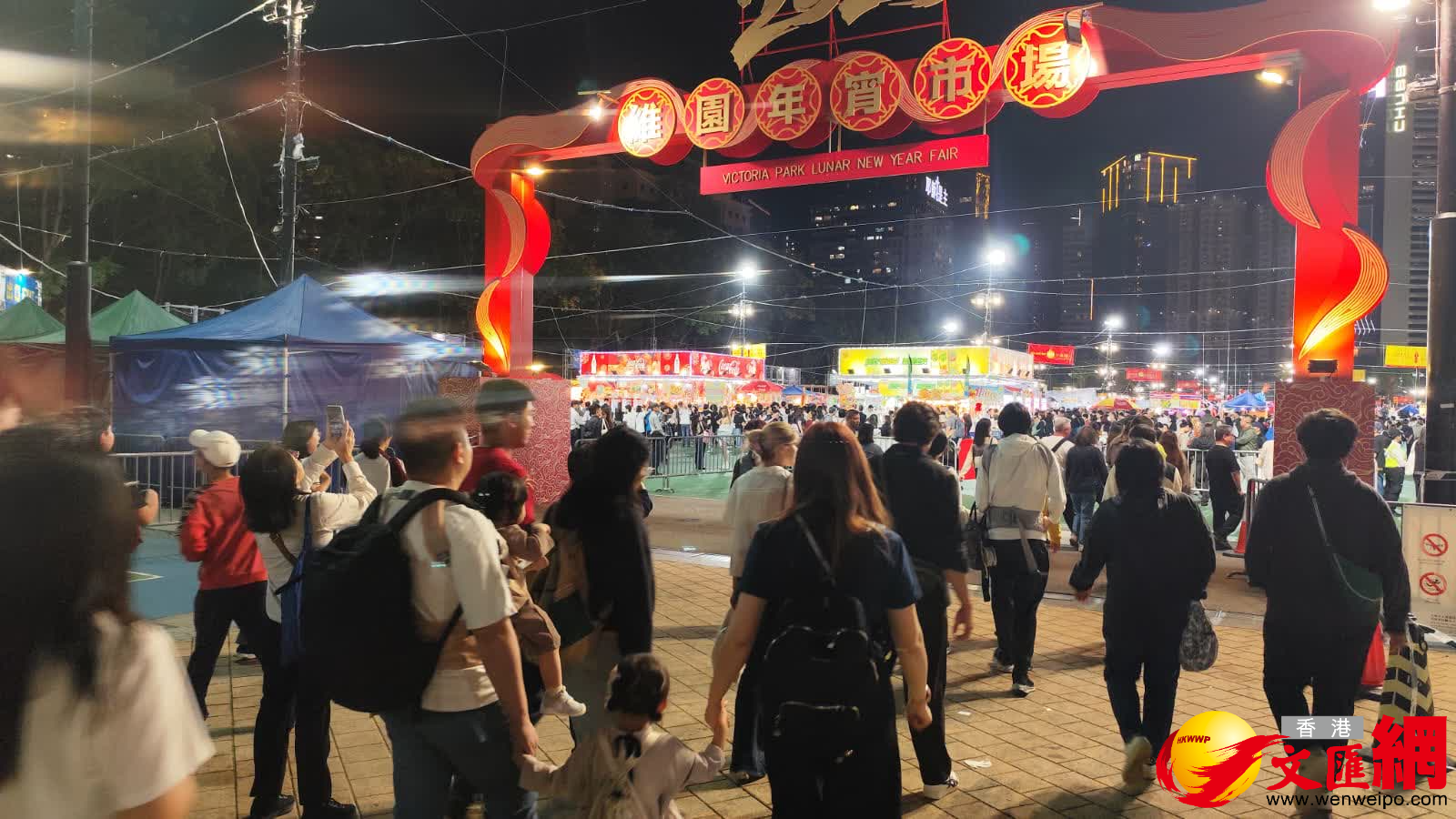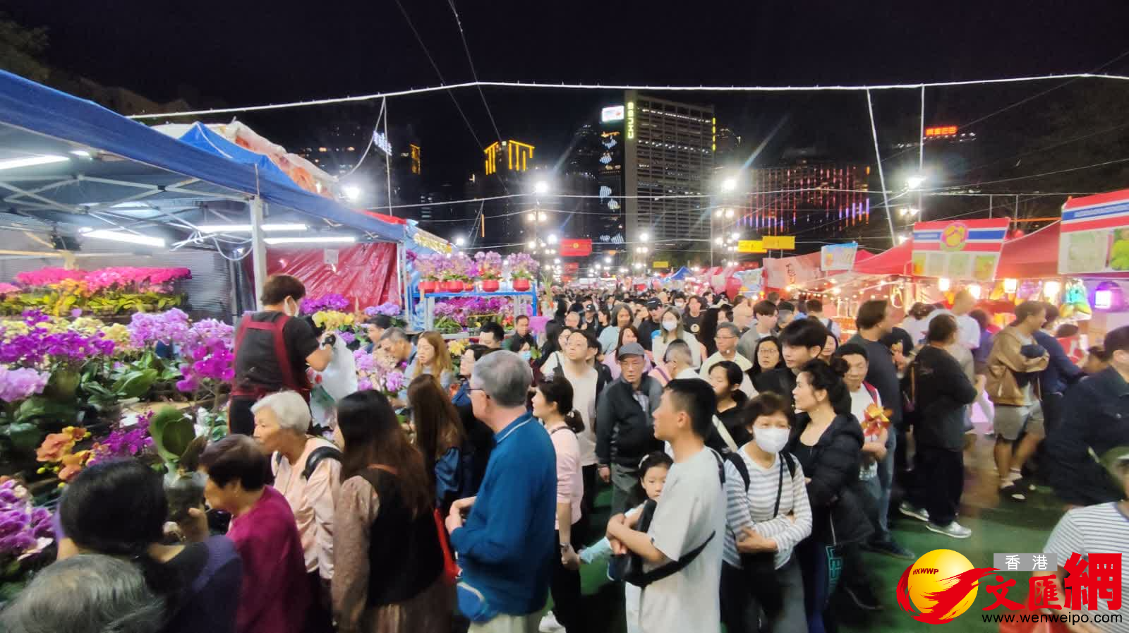 食物環境衞生署(食環署)今年在全港設立14個年宵市場,各區年宵市場均會通宵開放。今日(16日)是農曆年廿九,傳統上市民在團年飯後逛花市行大運,其中規模最大的維園年宵市場,入夜後人頭攢動,場面熱鬧,很多商戶進入最後衝刺,以減價清貨推銷商品。有商戶指今年生意暢旺,人流多,生意額比去年多三成,不少商戶因貨品大部分早沽清,可能要提早「收爐」。