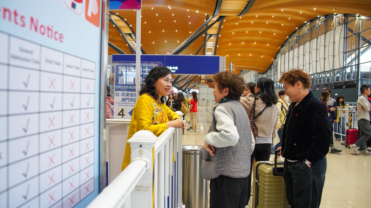 陳美寶感謝各前線員工在佳節期間堅守崗位、無懼辛勞,亦感謝各營運機構及相關部門早作部署、通力合作,令港珠澳大橋以及各個出入境口岸在新年期間整體運作暢順。現場所見,經港珠澳大橋口岸出境的人潮絡繹不絕,抵港的旅客亦有不少。營辦商預計年初三將會是另一高峰,已做好準備應對旅客的出行需求。有賴各前線人員的付出,讓市民和旅客都可以安心、開心往返香港,同親友共度一個喜樂團圓的新歲,陳美寶亦親身與部分外出旅遊的市民交流, 祝福他們馬年路路暢通,出入平安。