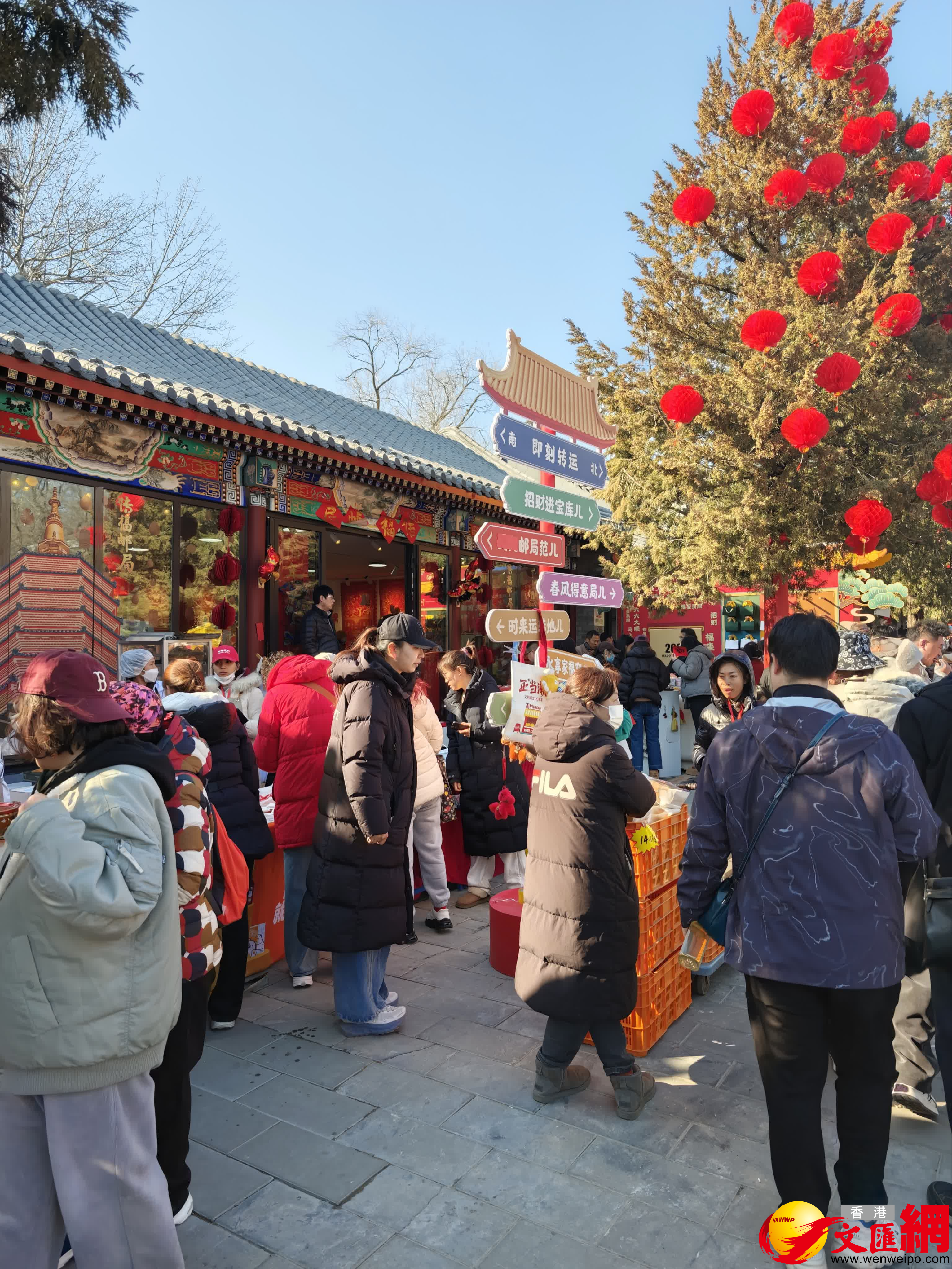 記者在廟會現場看到,祈福區古樹參天,枝幹上密密麻麻懸掛着寫滿「家宅平安」「學業有成」「事業順利」的紅色祈福帶,隨風輕揚,承載着人們對新年的美好期許。非遺體驗區熱鬧非凡,「北京範兒」沉浸式街區裏,剪紙藝人巧手翻飛,糖畫攤前香氣四溢,老北京叫賣聲此起彼伏,喚醒了深藏於記憶中的年味。