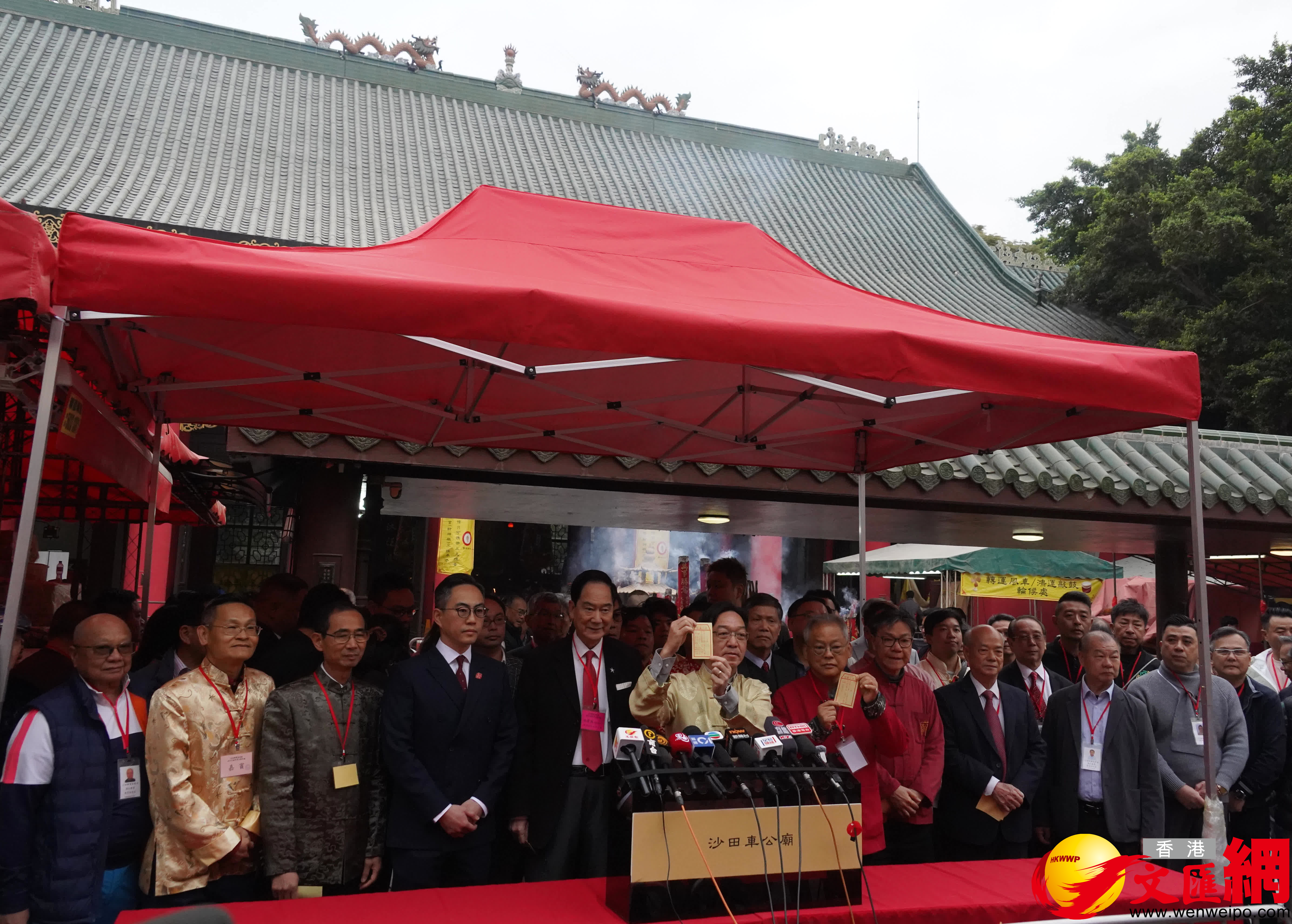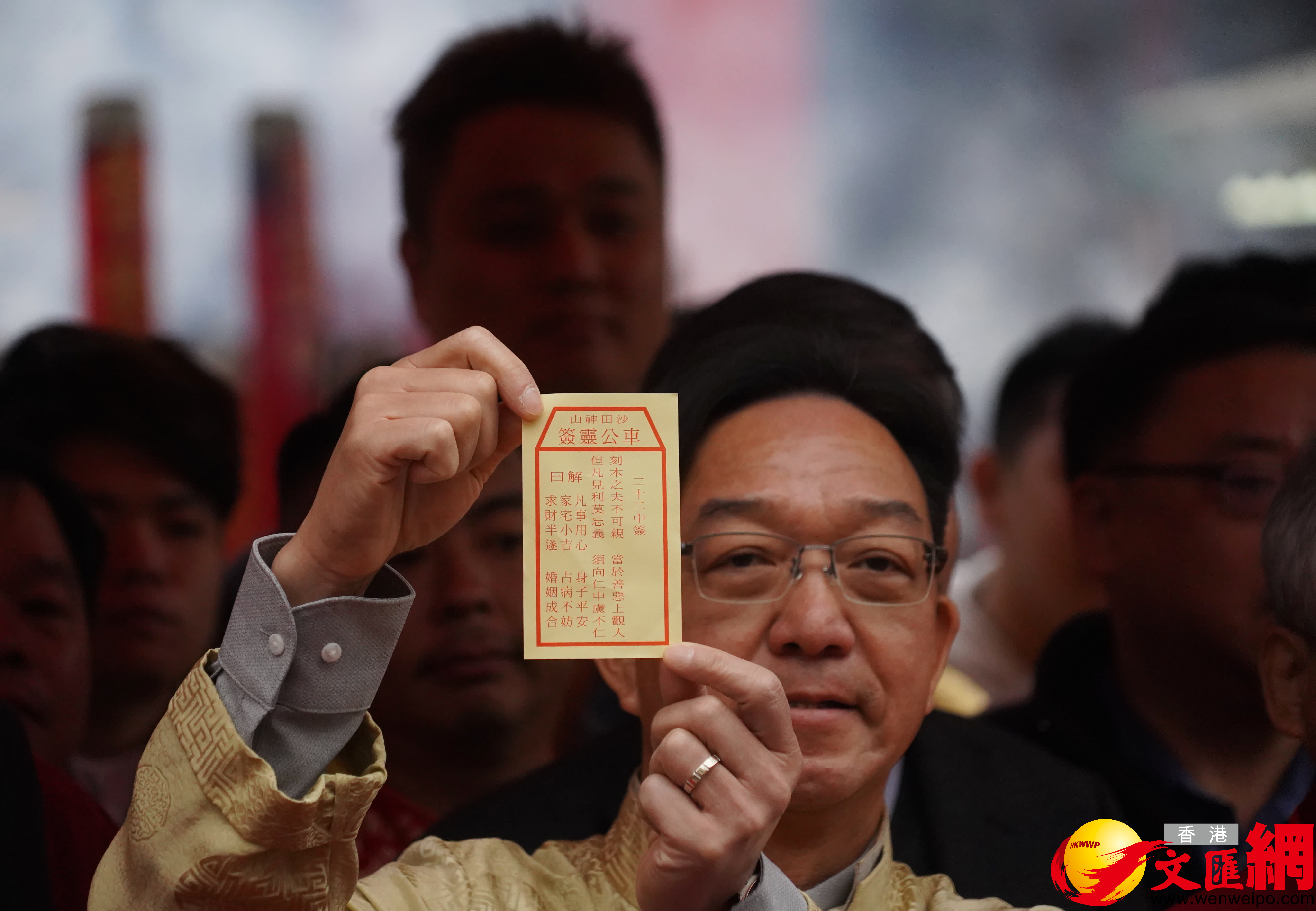 (香港文匯報記者 黃子晉)今天(18日)是大年初二車公誕。上午8時許,新界鄉議局主席劉業強按照傳統,率領沙田鄉事委員會代表及眾鄉紳到沙田車公廟為香港求籤祈福,求得第22籤中籤。籤文曰:「刻木之夫不可親,當於善惡上觀人;但凡見利莫忘義,須向仁中慮不仁。」