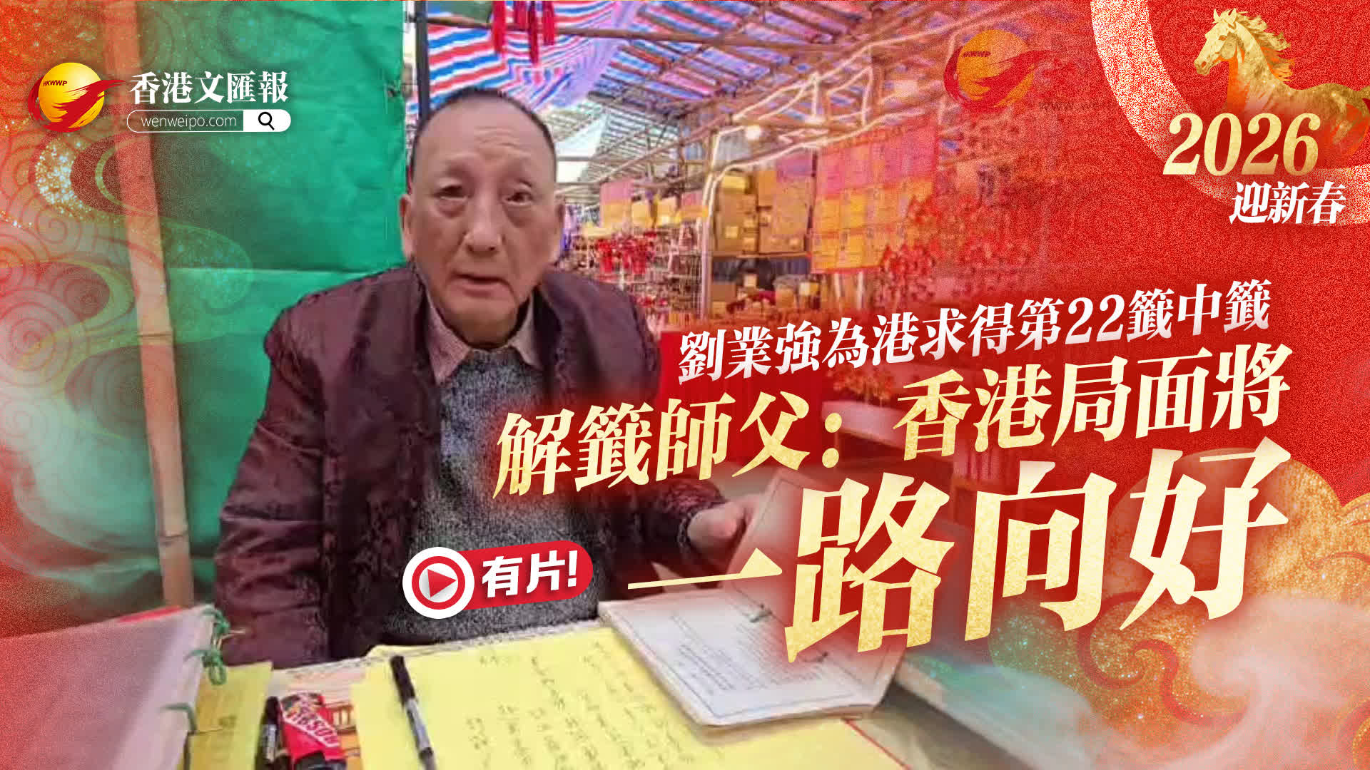 解簽師父陳聖雲表示,今年香港求得的車公第二十二簽表面是中簽,但香港實質蘊含向上之勢,整體運勢是逐步向上發展,相信地產將持續向好,帶動其他各行各業逐步上升,金融方面表現就算不特別突出,也不會很差,屬於穩步向前,整體經濟環境是穩中向上。